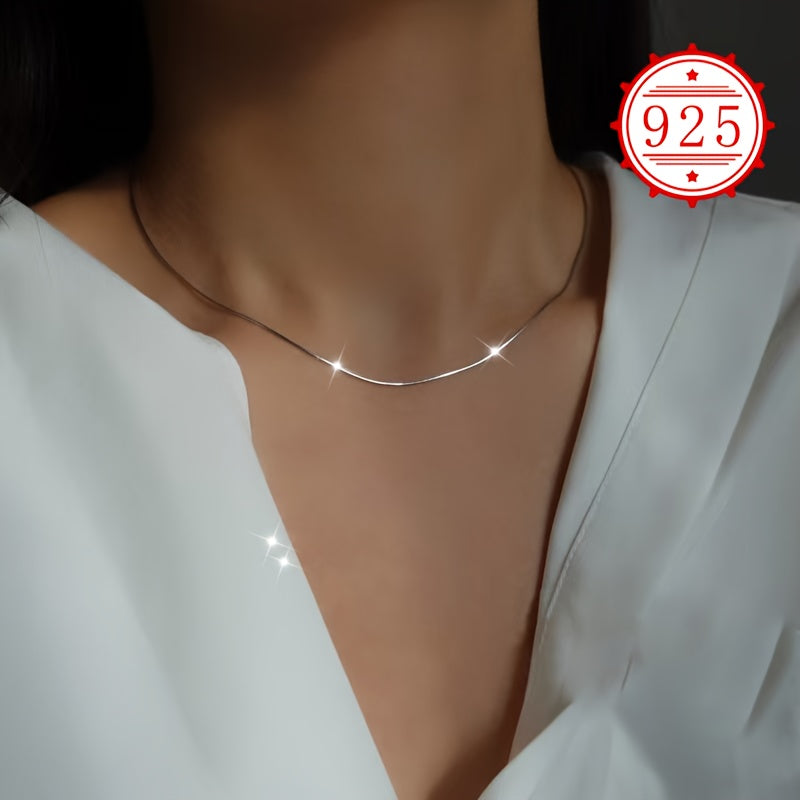 This stylish snake chain necklace is made of hypoallergenic 925 silver, perfect for the collarbone area. Ideal for gifting to couples or friends.