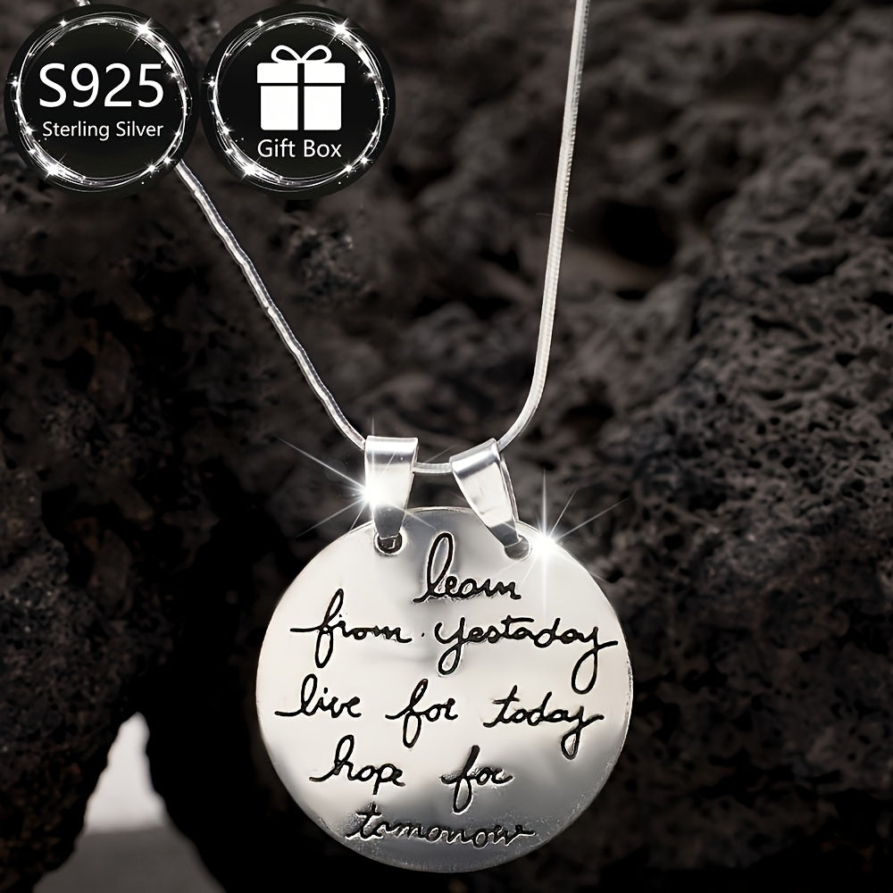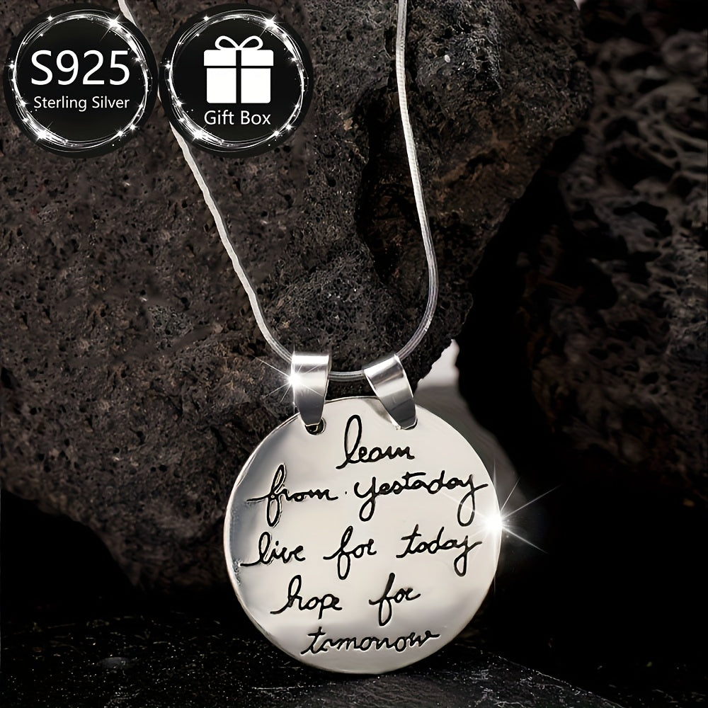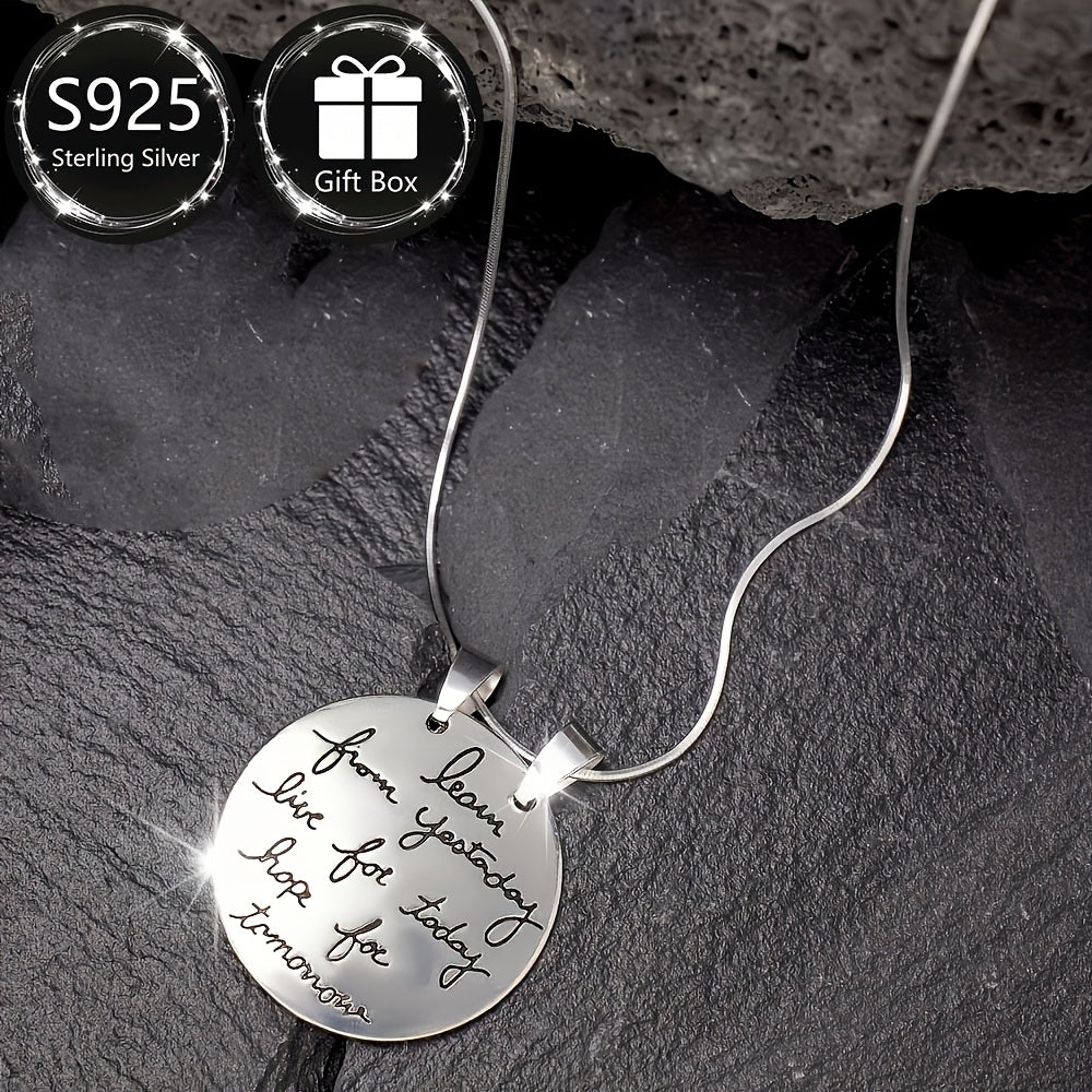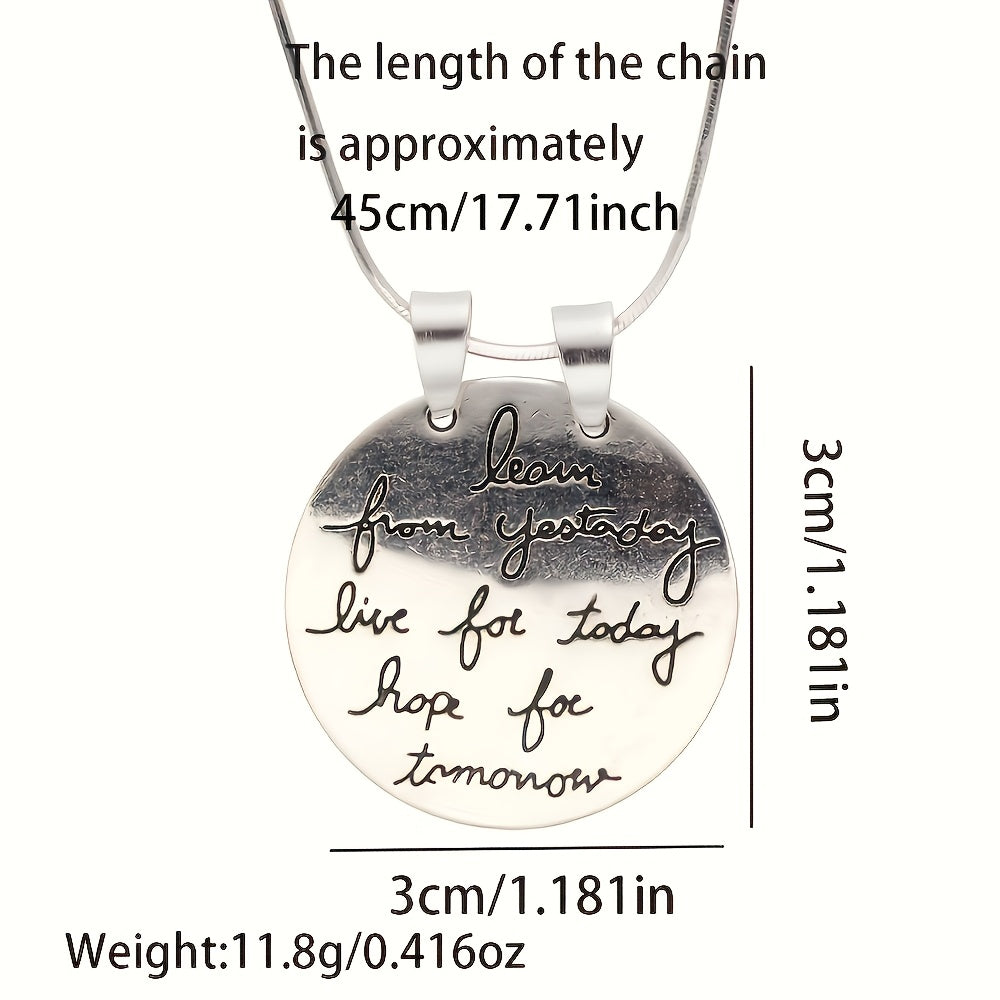 Add a touch of retro K style to your look with this silver necklace. Featuring an inspirational engraved round pendant, it is perfect for daily wear or parties.