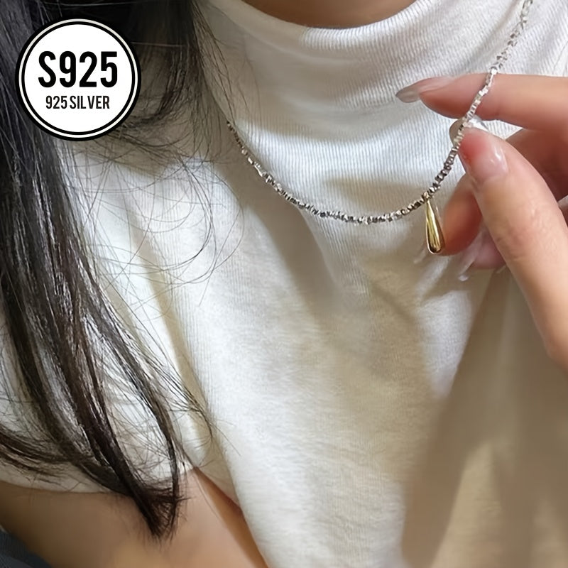 This elegant necklace features a broken silver golden water drop pendant on a light style silver block bead texture chain. Perfect for daily wear or as a couple gift.