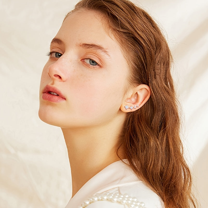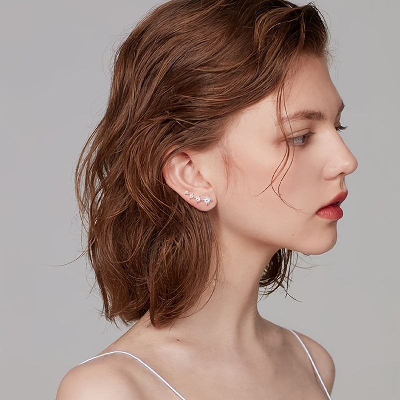 925 Silver Zircon Cartilage Earrings, Crystal 4 E