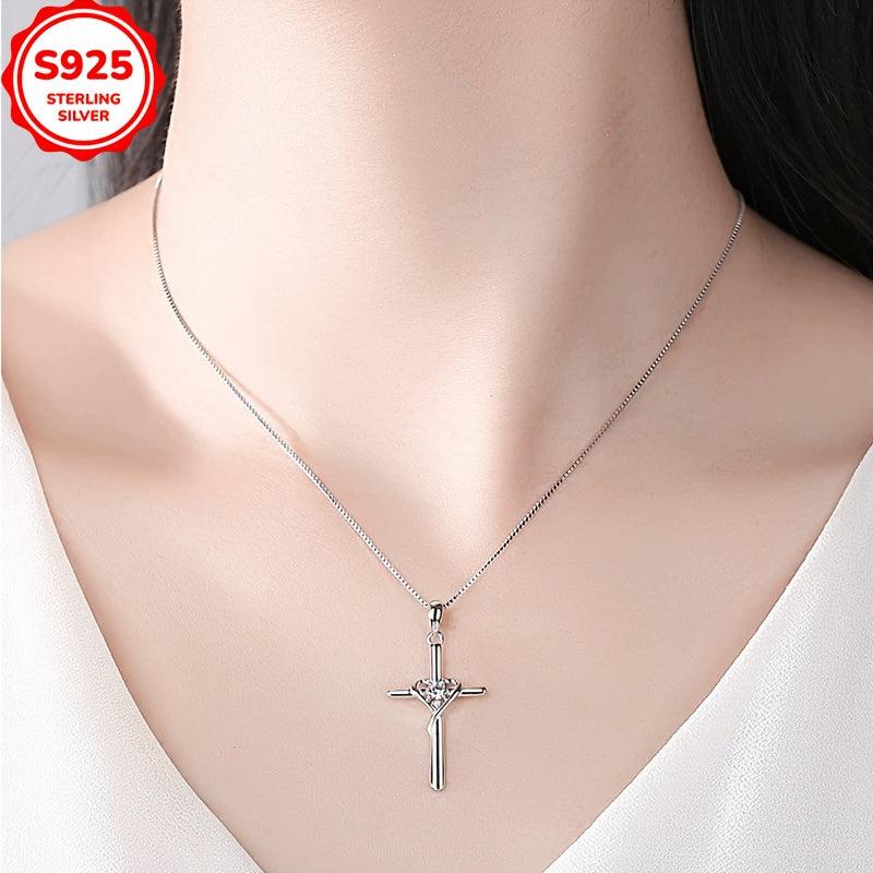 This stunning 925 sterling silver cross pendant necklace is the perfect gift for women. Its hypoallergenic quality makes it suitable for daily wear and special occasions, versatile for all seasons.
