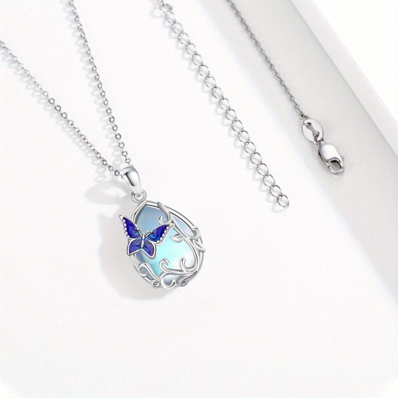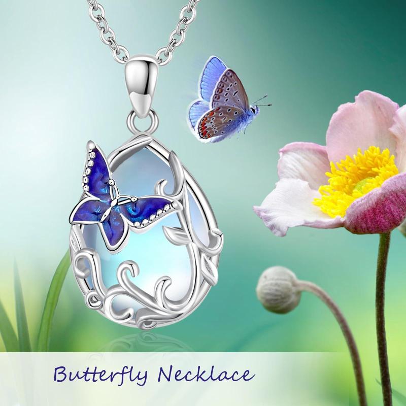925 Sterling Silver Moonstone Butterfly Necklace for Women