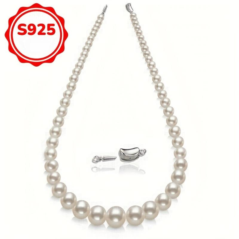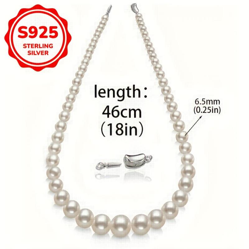This elegant pearl necklace is crafted with 925 sterling silver overlay, making it ideal for daily wear and gift giving. It is compatible with all seasons and features a low allergy bead material for added comfort.