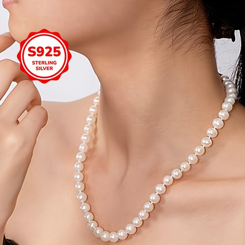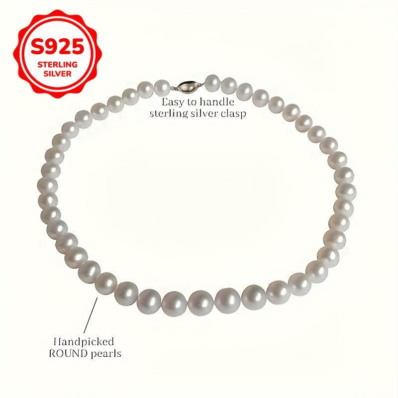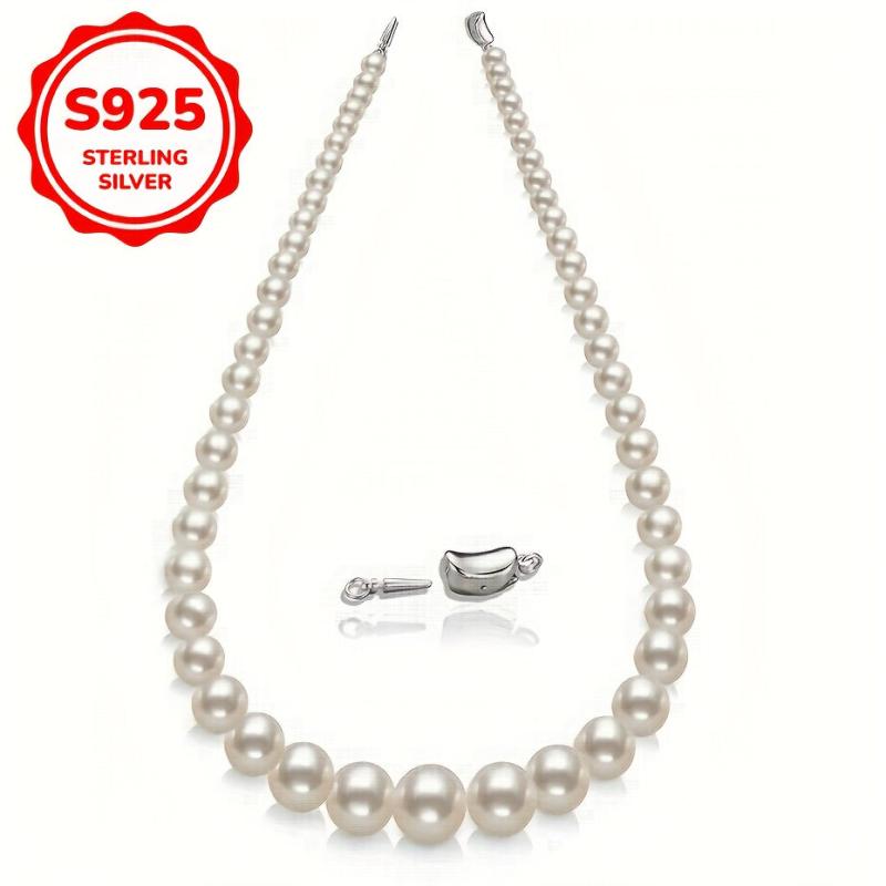 925 Sterling Silver Pearl Necklace for Women - Low Allergy Bead Material