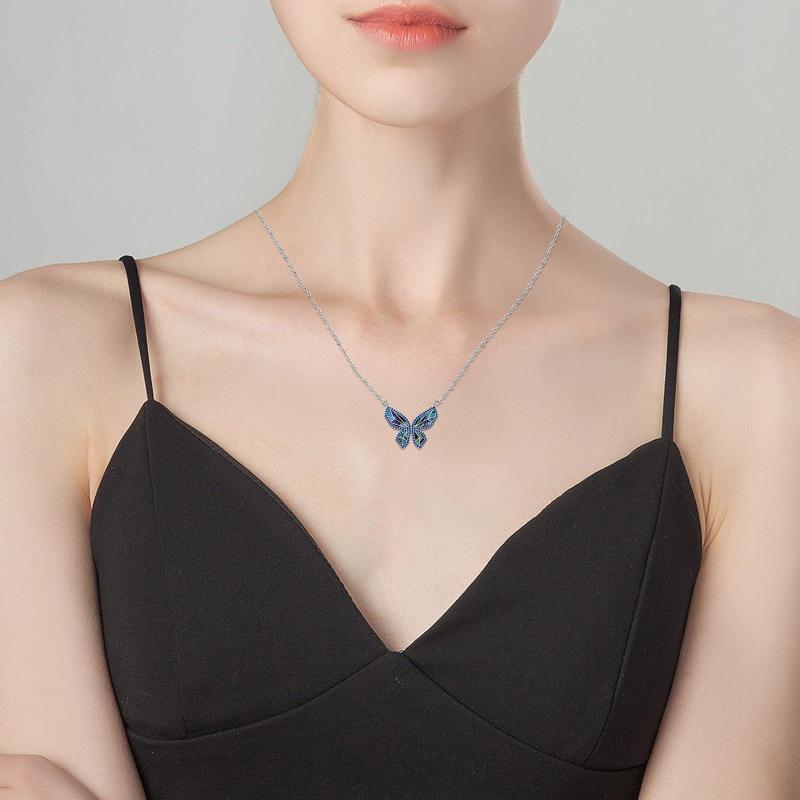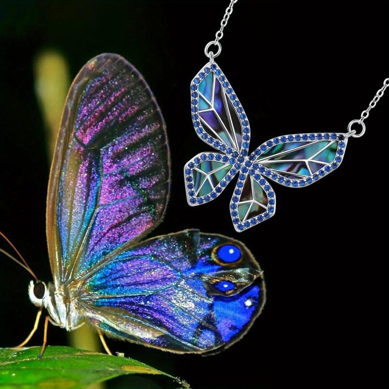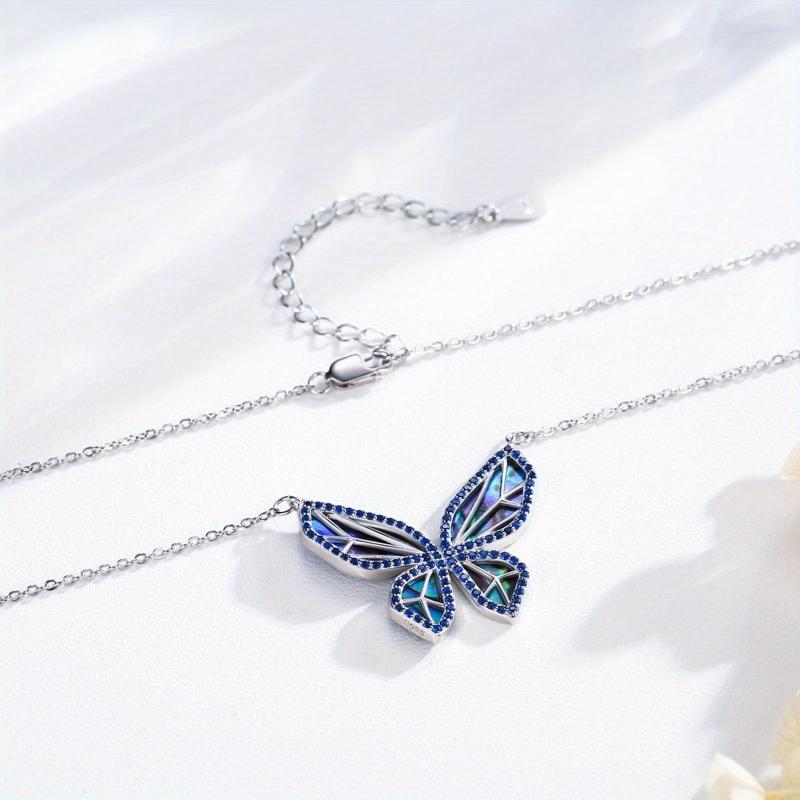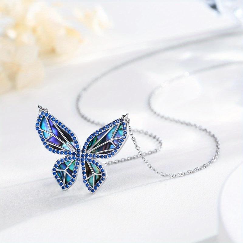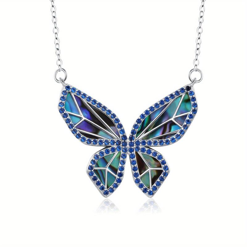 Add a touch of elegance to your look with this stunning abalone butterfly necklace. Made of 925 sterling silver, this butterfly jewelry piece features a beautiful abalone shell pendant that will catch everyone's eye. Perfect gift for Christmas.