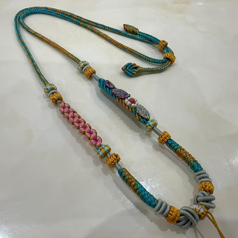 Elevate your casual attire with this hand woven adjustable bohemian necklace. Made with durable nylon rope and vibrant beads, it's perfect for Christmas, birthdays, and anniversaries.