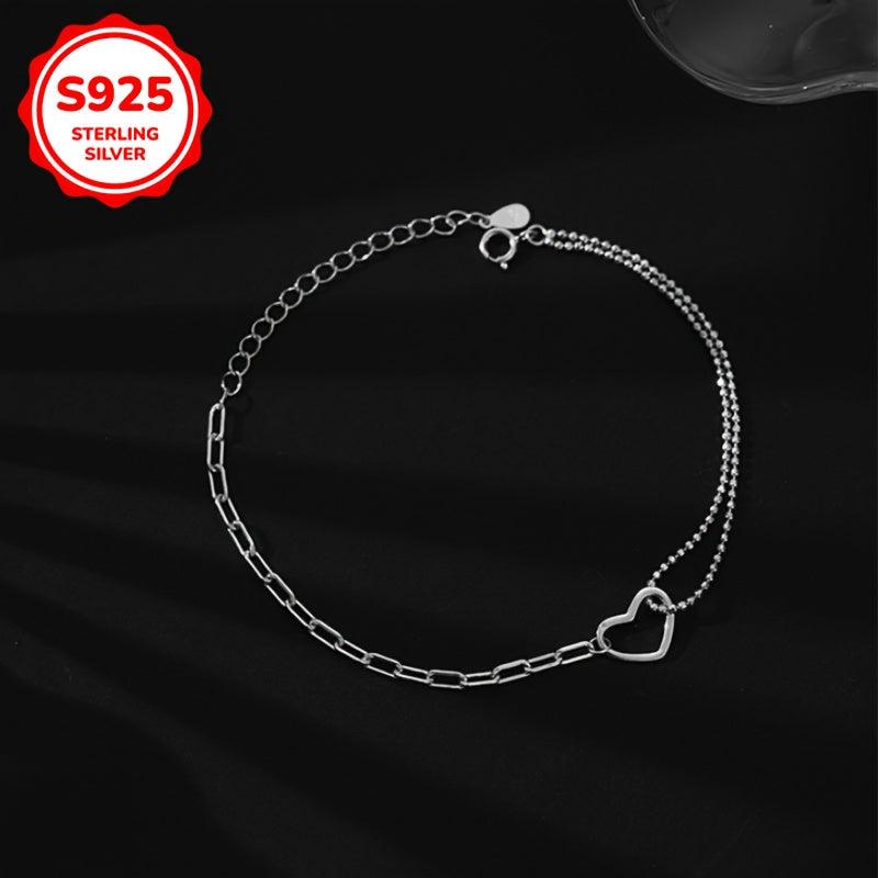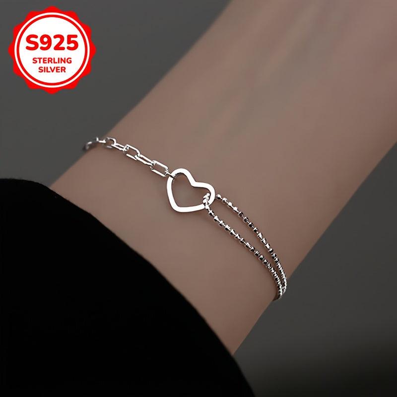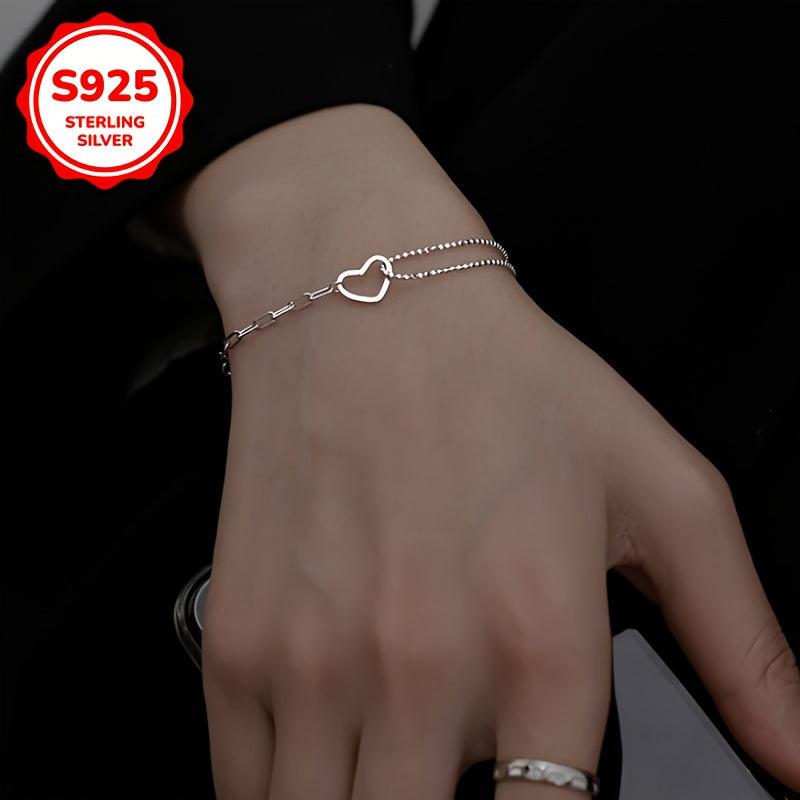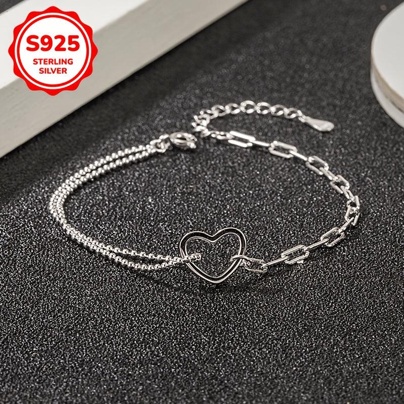 Show your love with this stylish heart-shaped bracelet. Made of S925 silver, this adjustable piece is perfect for daily wear or as a gift for mom or daughter.