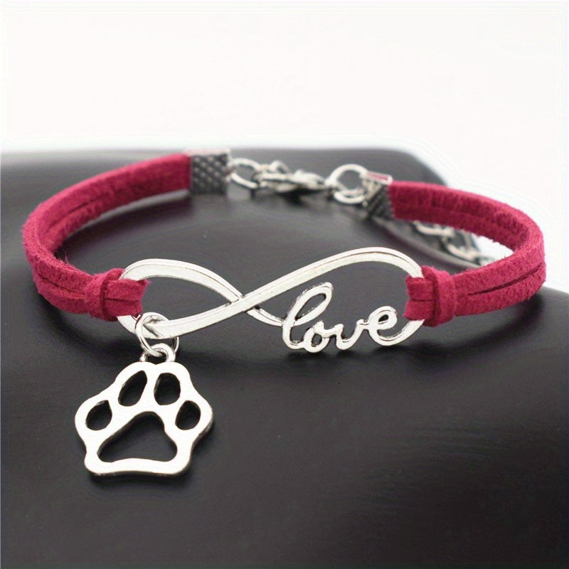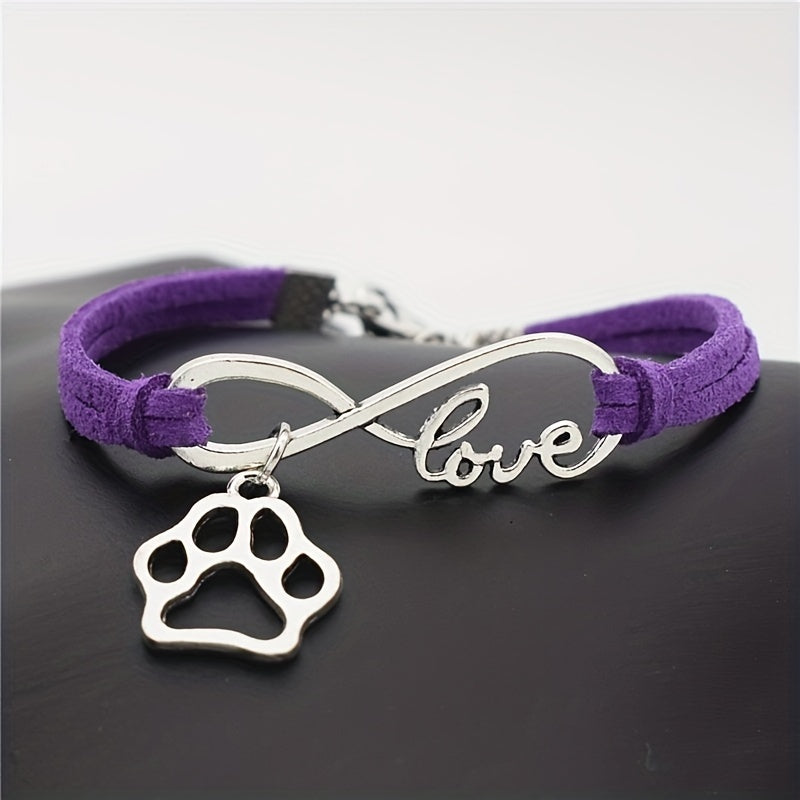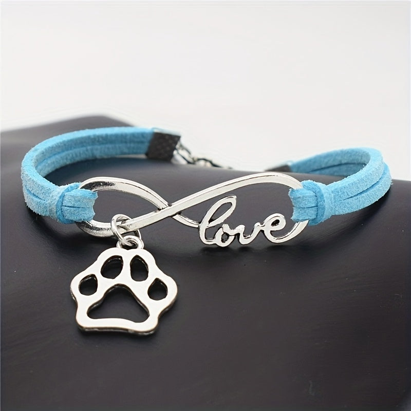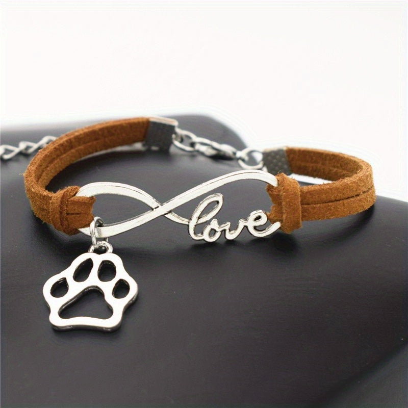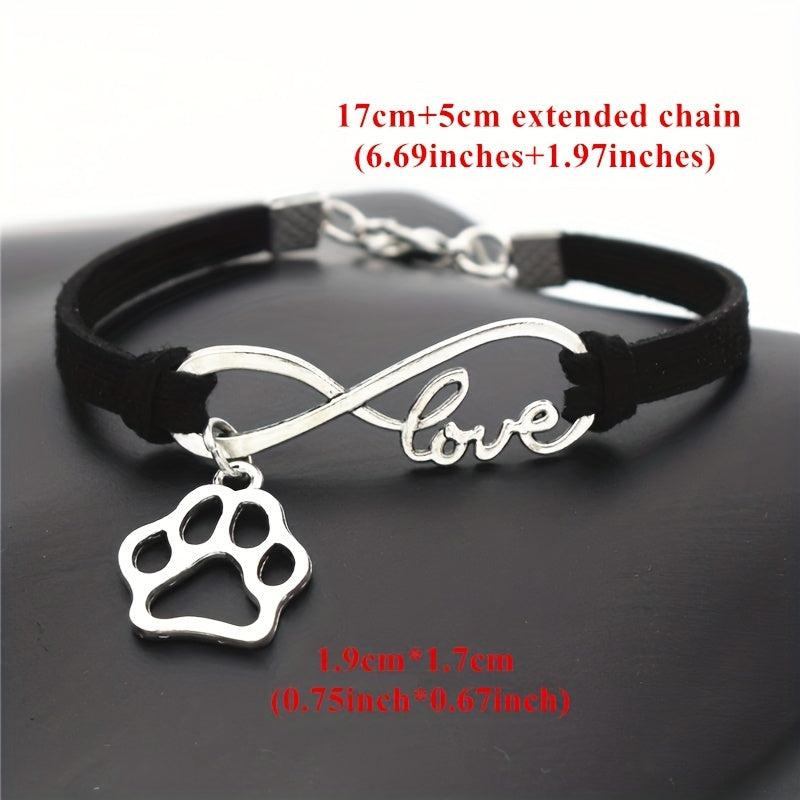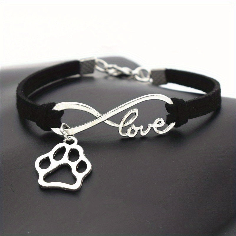 Antique Silver Infinity Love Pet Dogs Paw Charm Bracelets