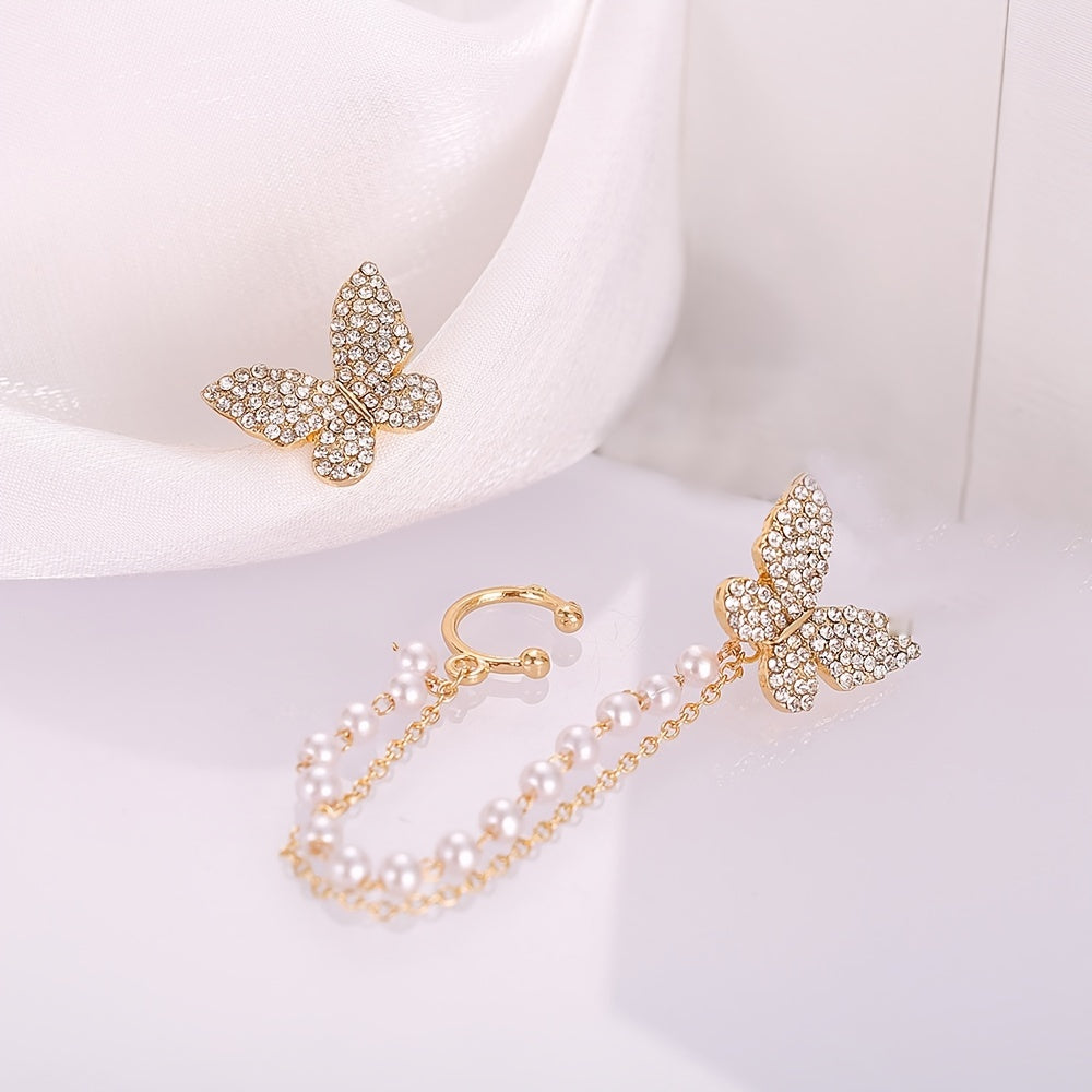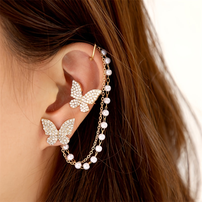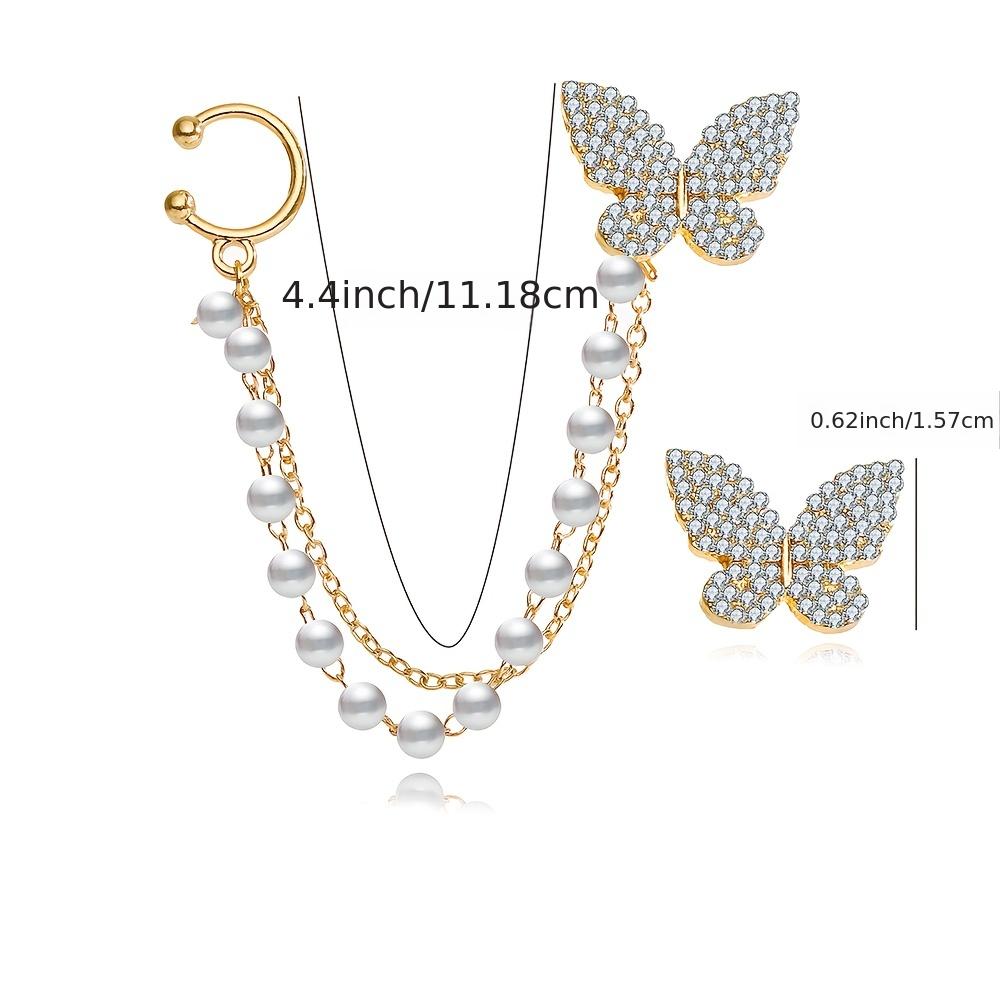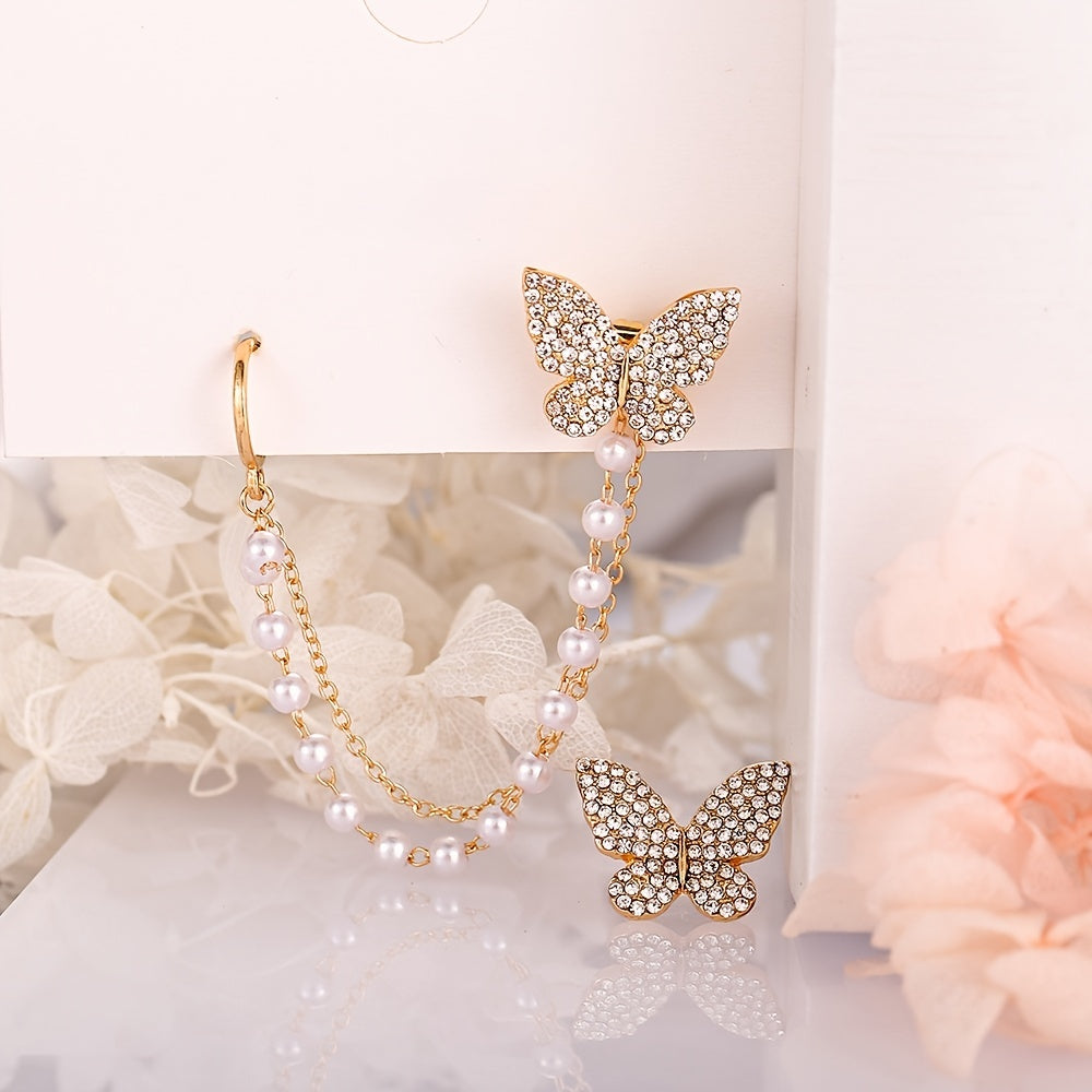 Elegant tassel chain earrings with baroque butterfly design and faux pearl accents, perfect for women and girls.