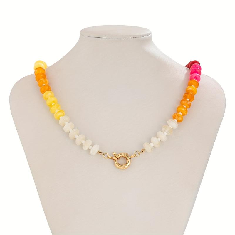 This colorful and sweet beaded necklace is perfect for adding a bohemian touch to your outfit. Whether you're heading to a festival, party, or just out for some shopping, this necklace will add a unique charm. It's also great for everyday wear.