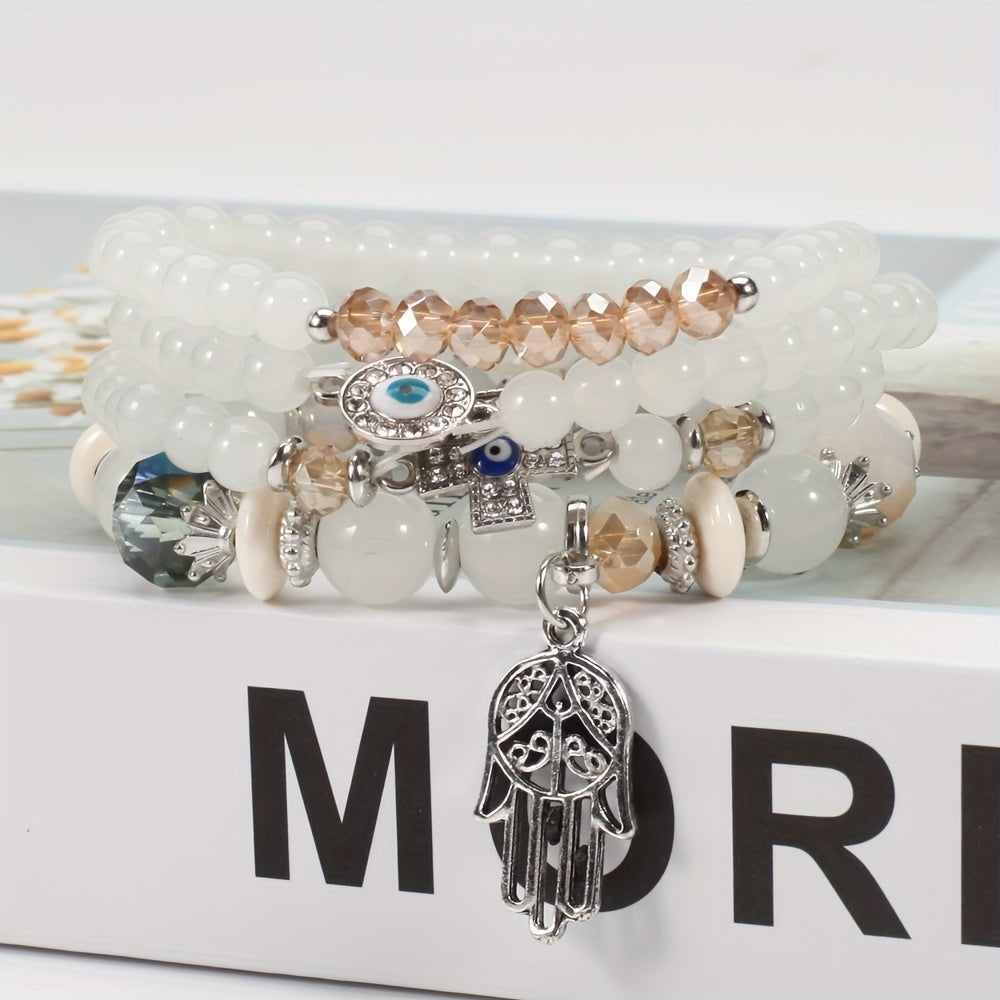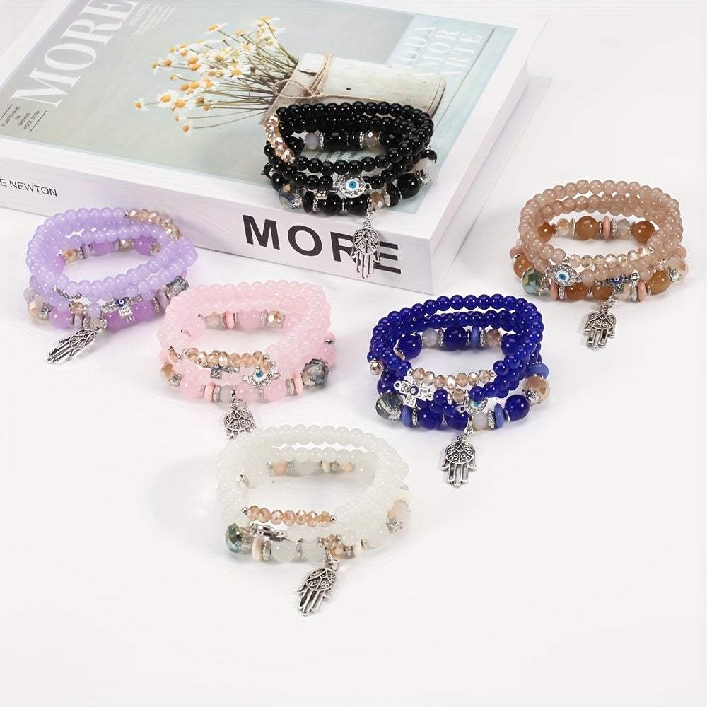 Bohemian Eyes Palm Cross Multilayer Bead Mexican Bracelet Gift