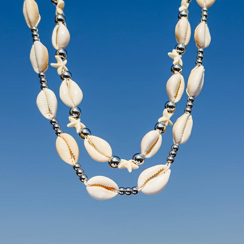 Celebrate in style with this stunning bohemian nautical shell and star necklace set. Perfect for parties, Ramadan, and special occasions. Makes a beautiful festive gift item!