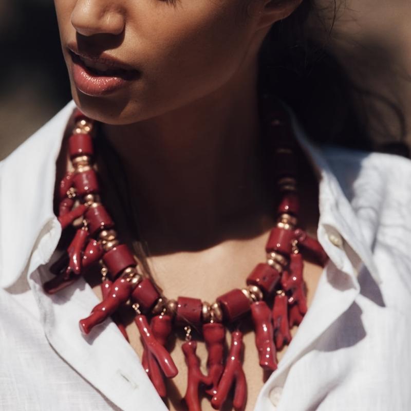 Bohemian Red Coral Pendant Necklace Set for Beach Party
