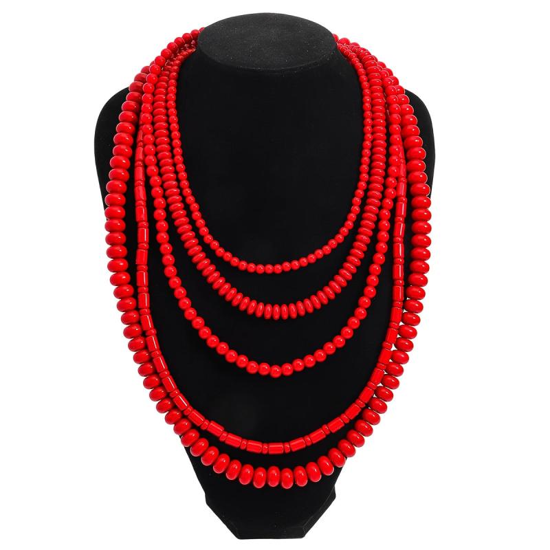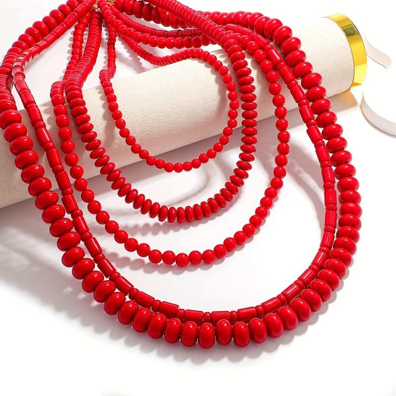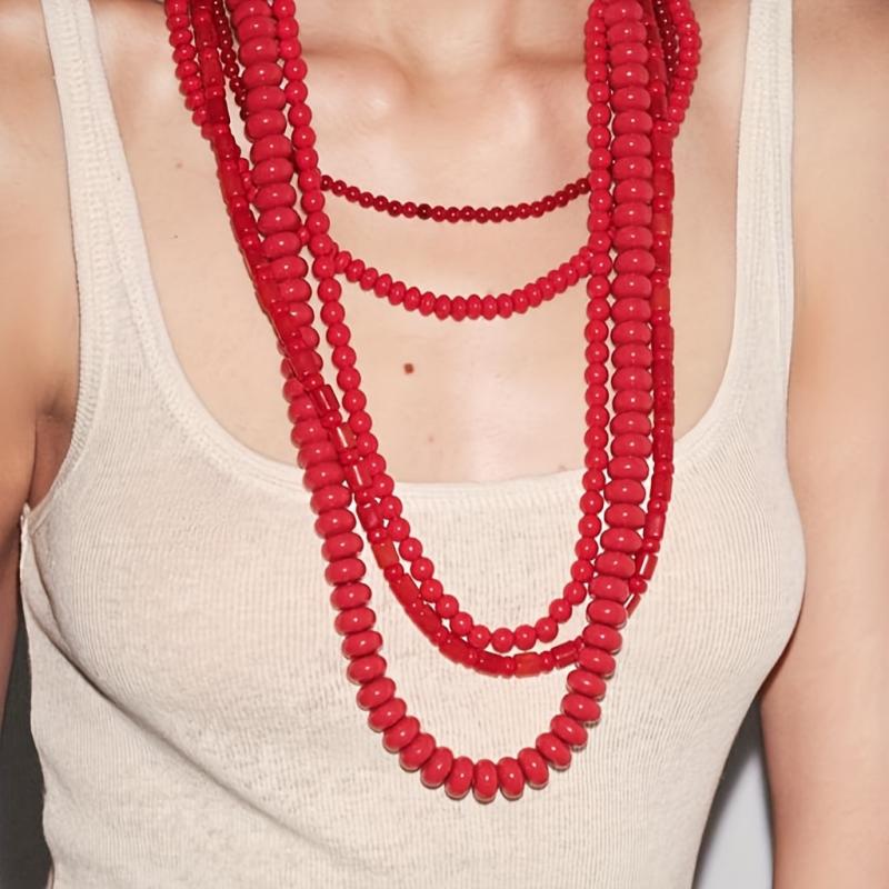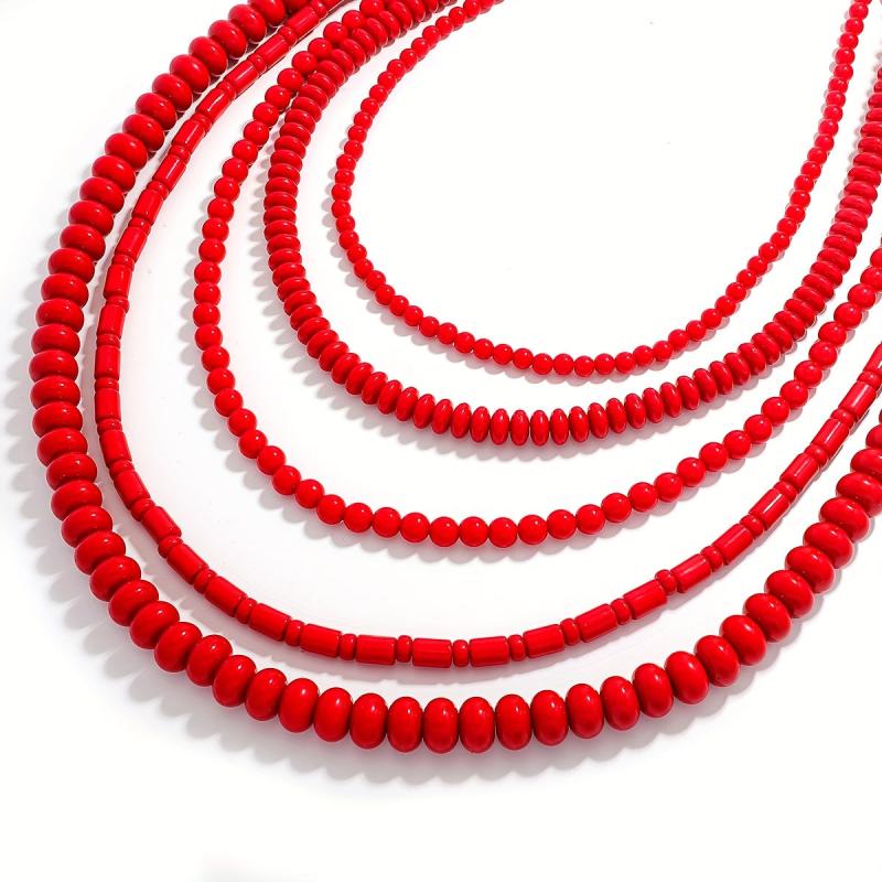 Elevate your style with this cursive inspired red geometric bead necklace. Lightweight, durable, and perfect for daily wear or vacation.
