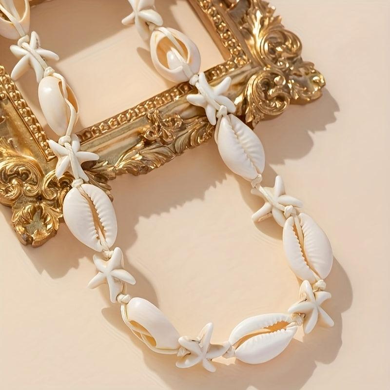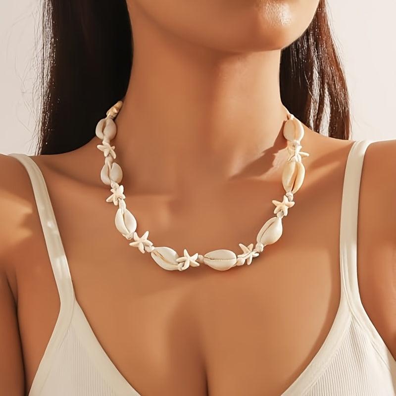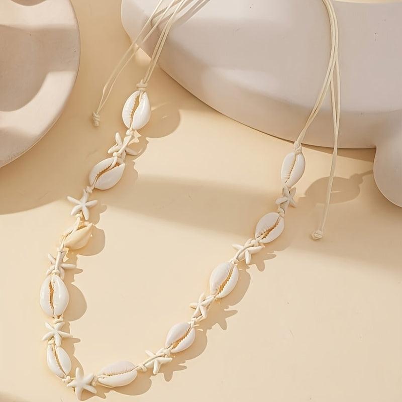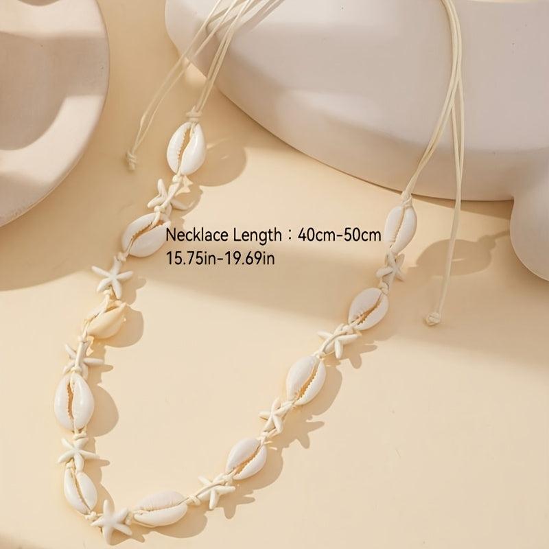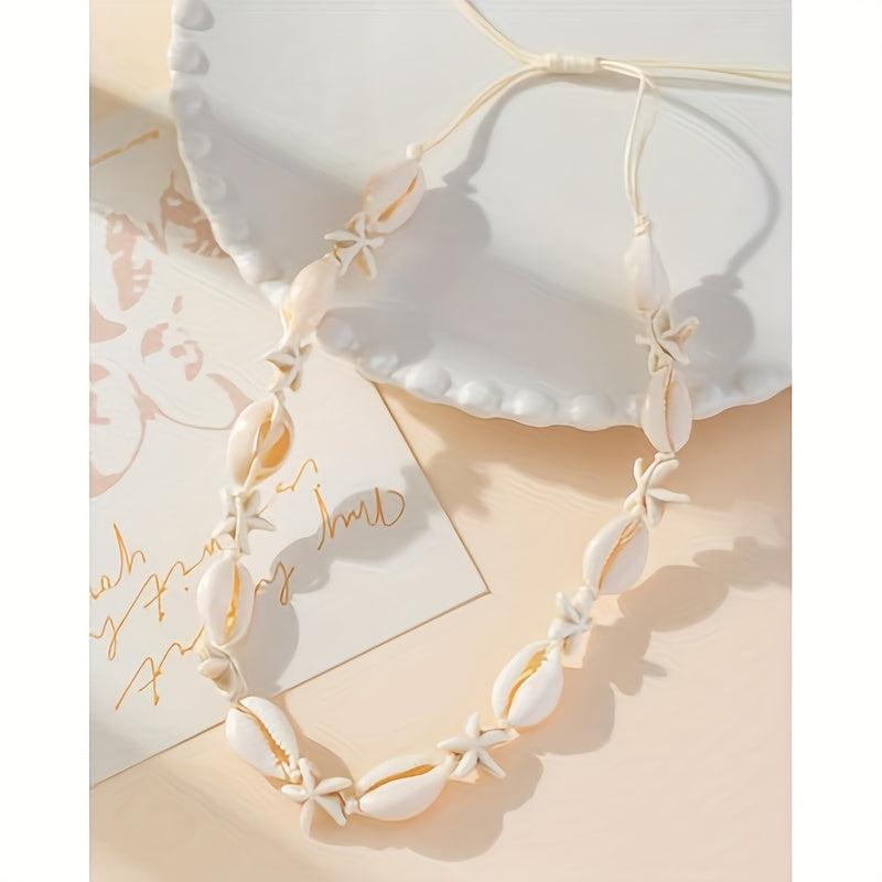 Elevate your summer style with this adjustable shell necklace featuring natural beads and a starfish pendant. Perfect for beach vacations and parties.