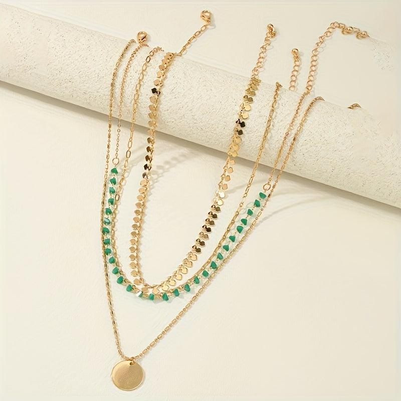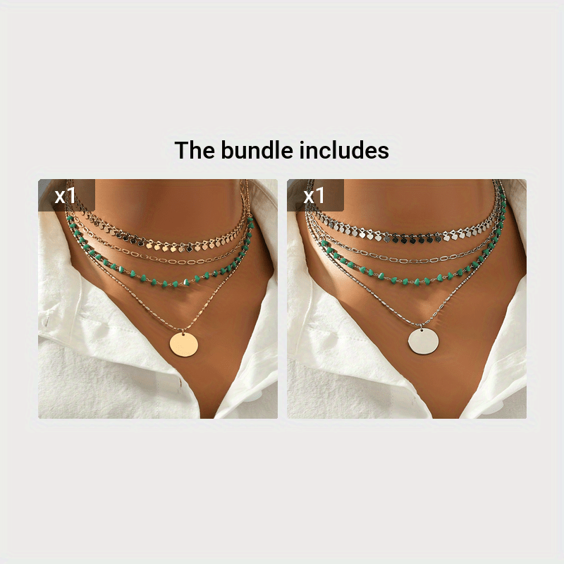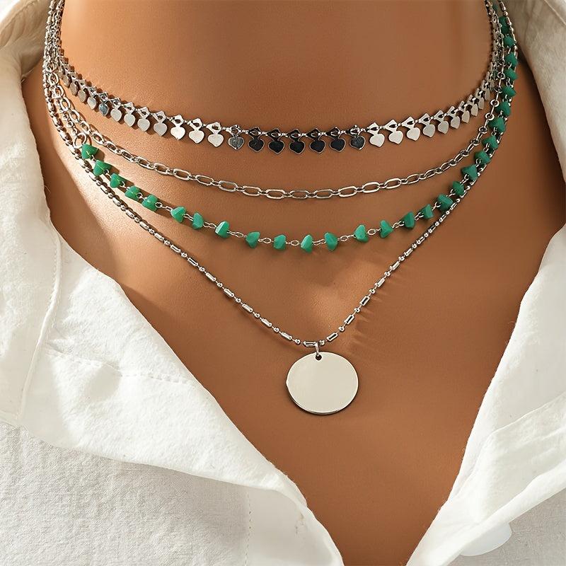This 4-piece necklace set features a bohemian style with turquoise pendants, perfect for daily wear or special occasions like birthdays, holidays, engagements, and weddings. It offers comfortable and stylish options for women.
