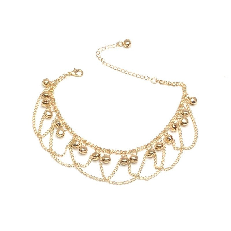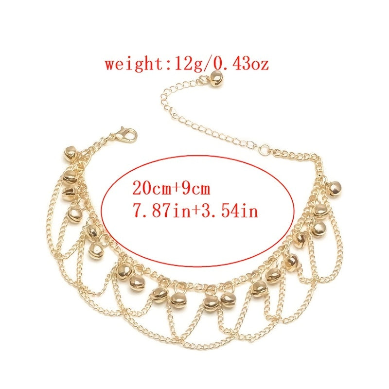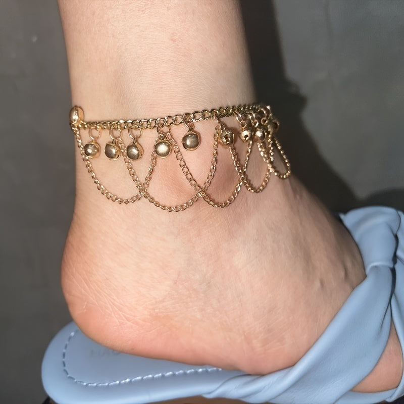 Add a touch of boho vibe to your outfit with this charm chain anklet featuring small bells and hollow copper chain. Perfect accessory to complement women's clothing.