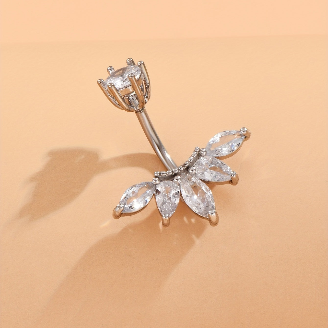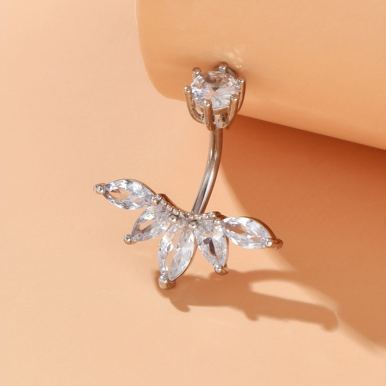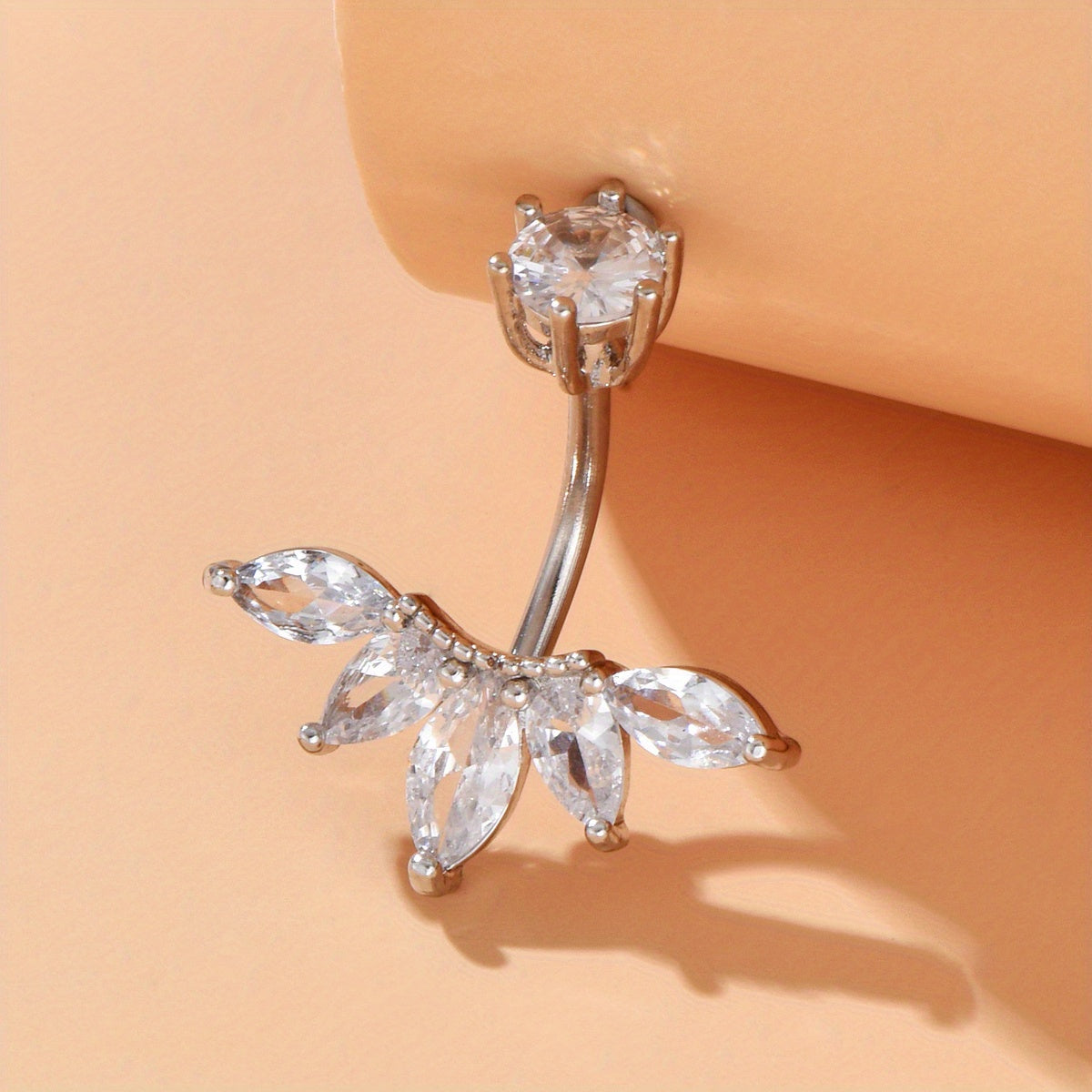 Enhance your style with this boho leaf-shaped belly button ring featuring stunning zircon inlay. Elevate your navel piercing jewelry collection.