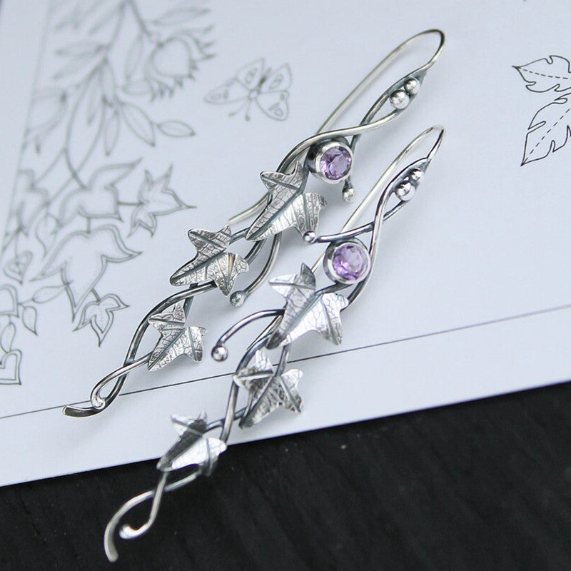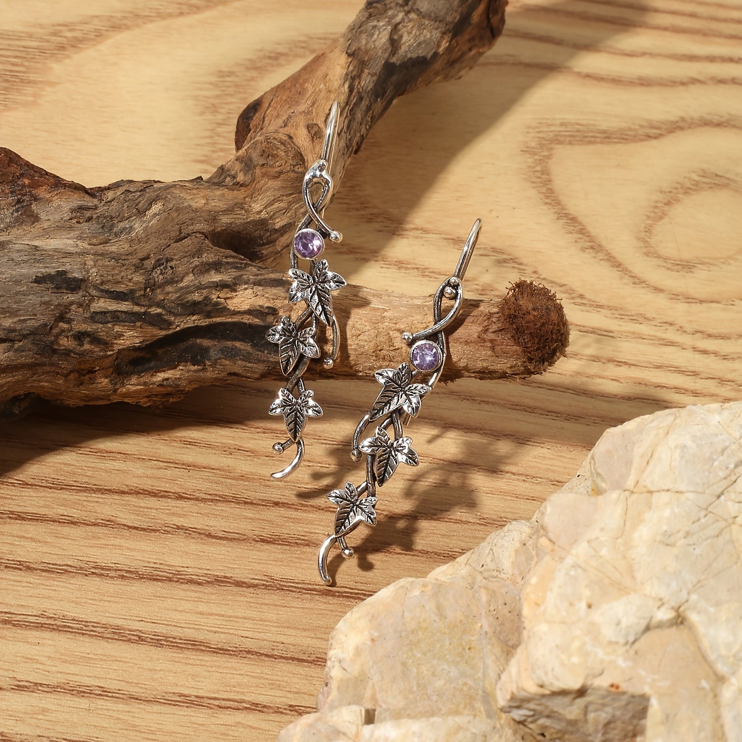 Add a touch of bohemian elegance to your outfit with these silvery leaf drop dangle earrings. Inlaid with colorful synthetic gemstones and made from 925 silver plated material, these earrings are sure to catch eyes.
