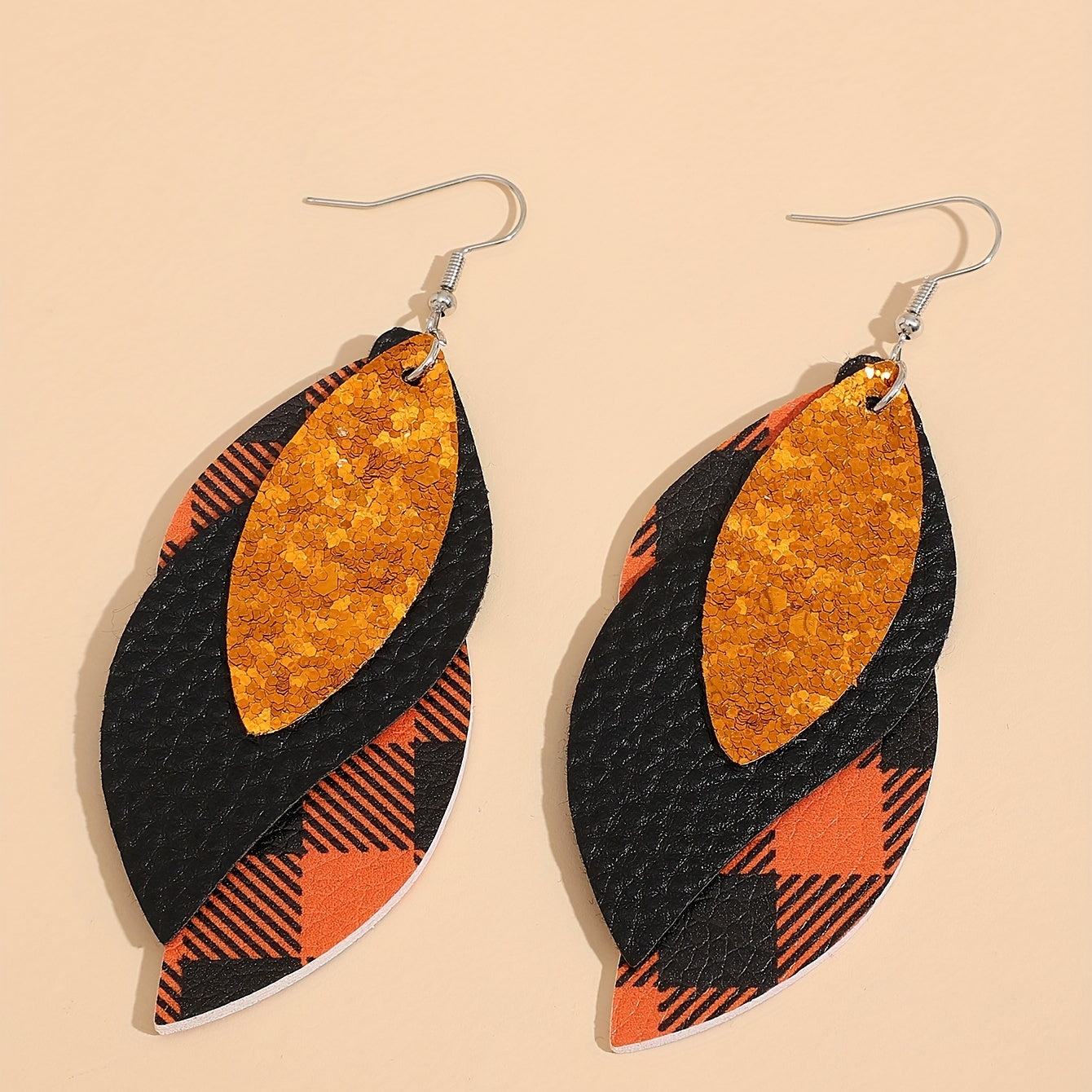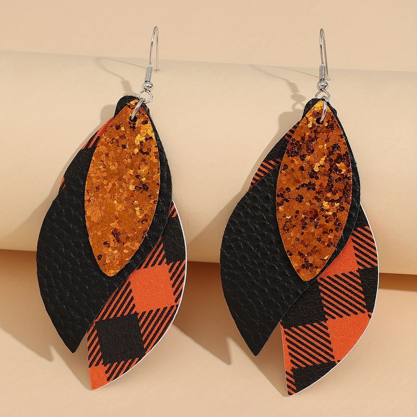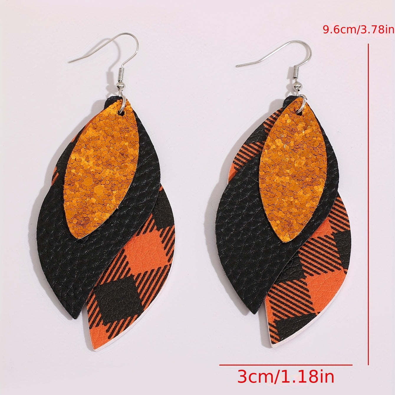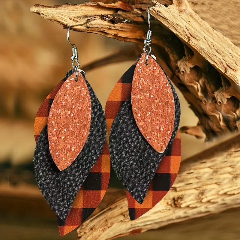 Add a touch of bohemian flair to your look with these 3-layer leaf shape dangle earrings. Made of PU leather, these earrings are perfect for adding a pop of style to any outfit. A great gift idea for any fashion-forward female.