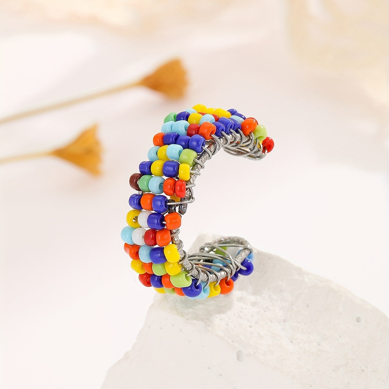 This boho style silver plated ring features colorful spinning beads that add a fun and vibrant touch to your look. The adjustable design allows for a comfortable fit, while the anti-anxiety properties of the beads can help promote relaxation and calmness.