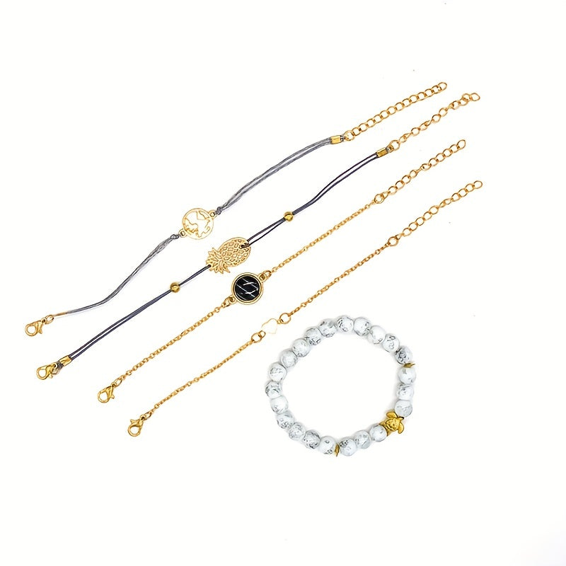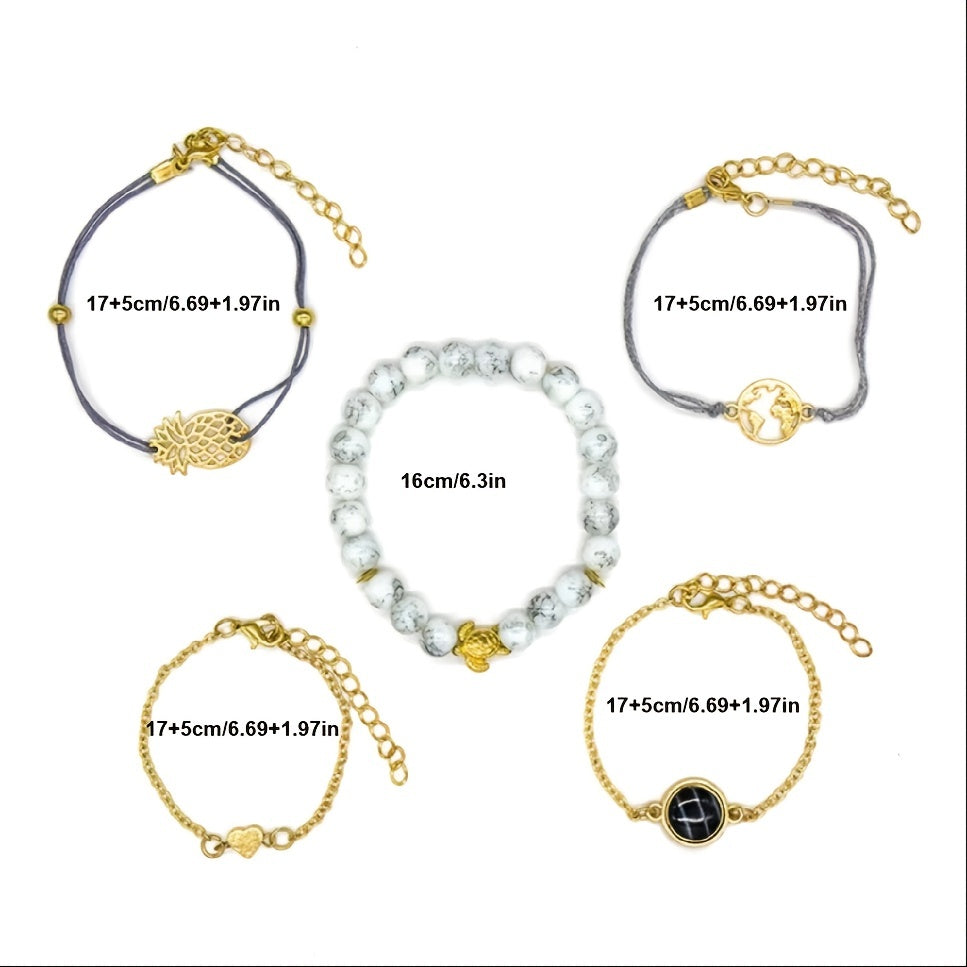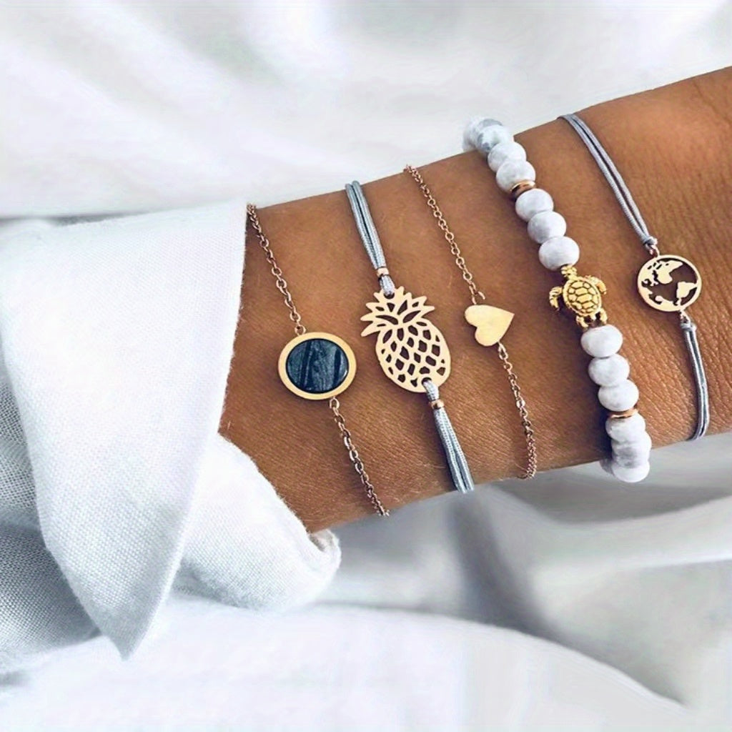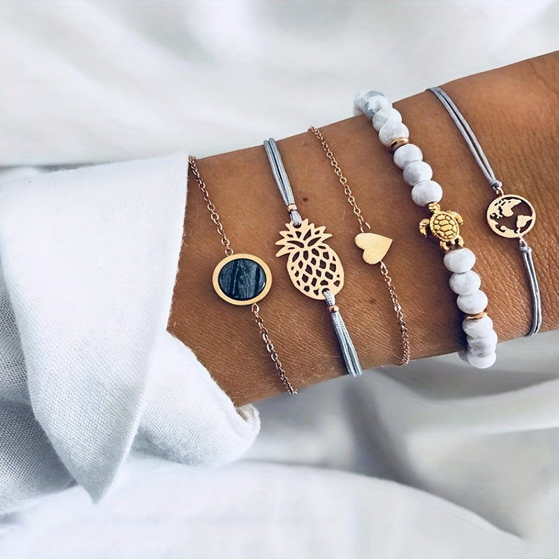 Boho Style Turtle Pineapple Love Beads Bracelet