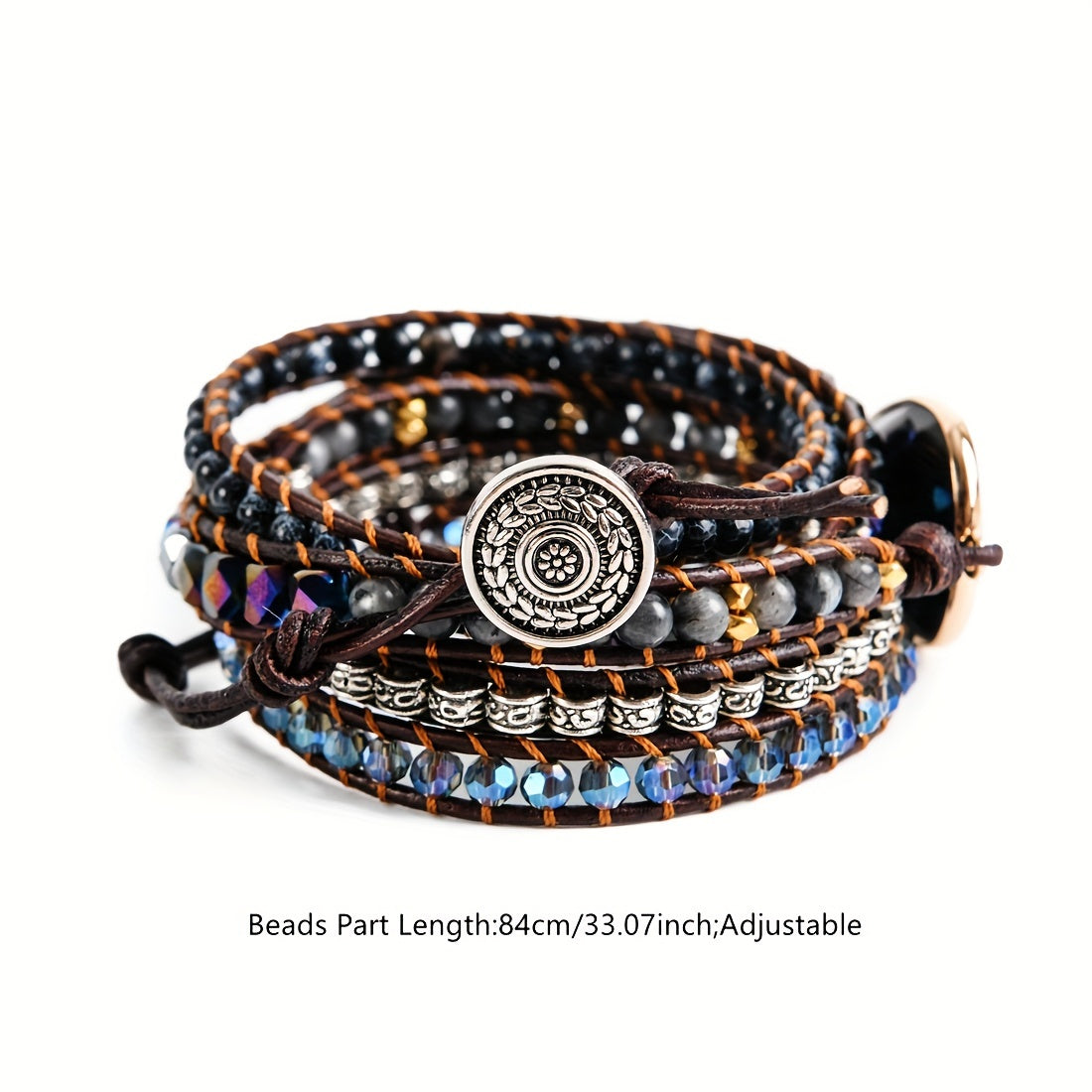 Enhance your boho style with this wrap bracelet featuring crystal natural stone beads. Perfect accessory for any outfit.