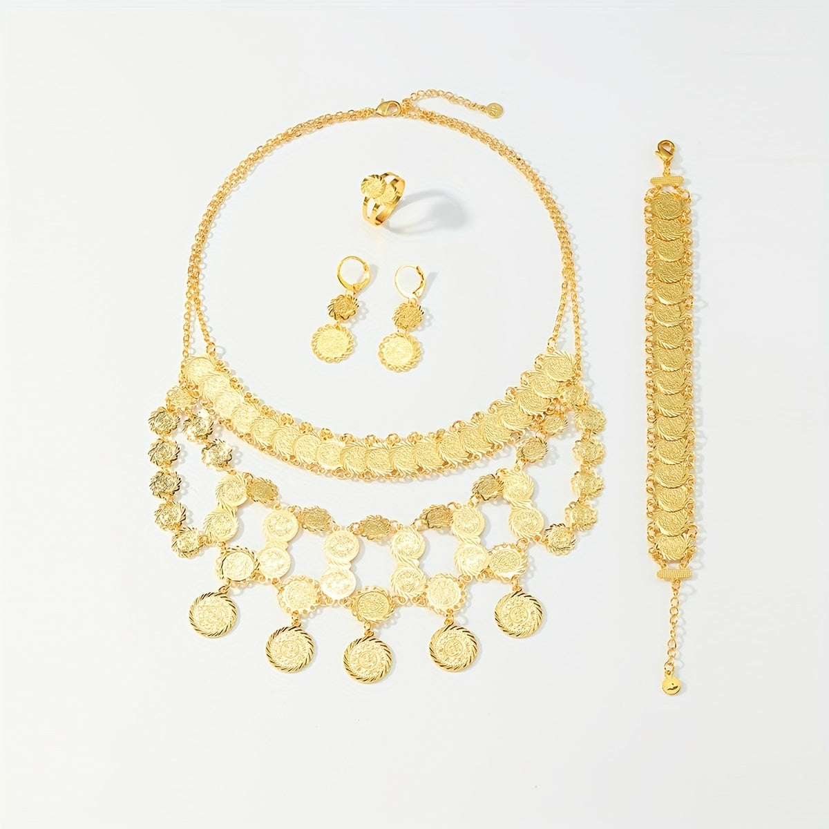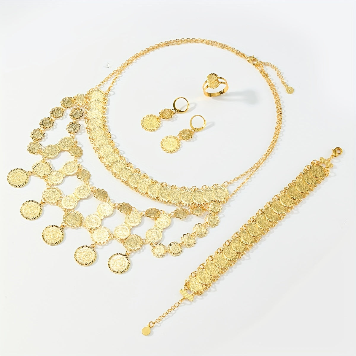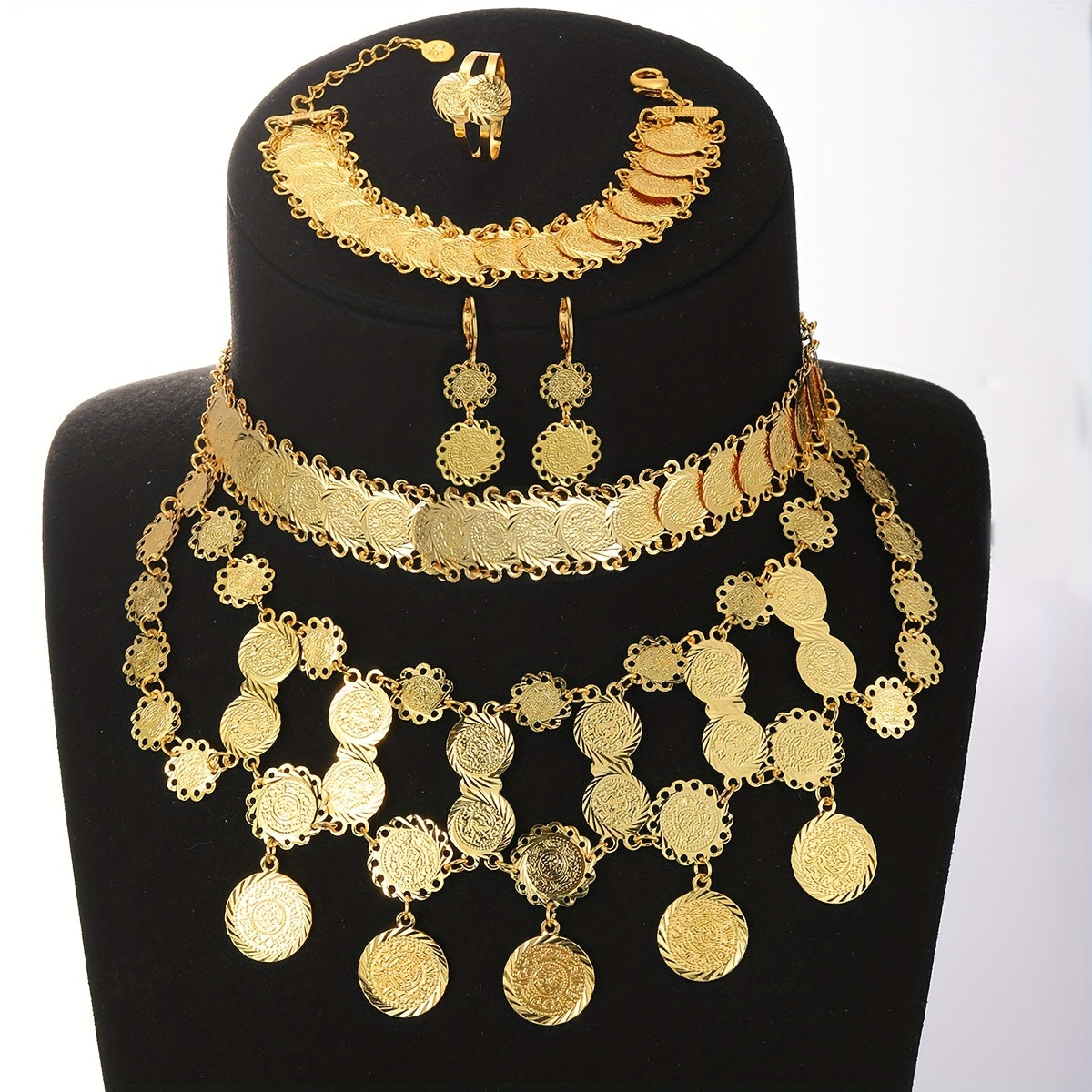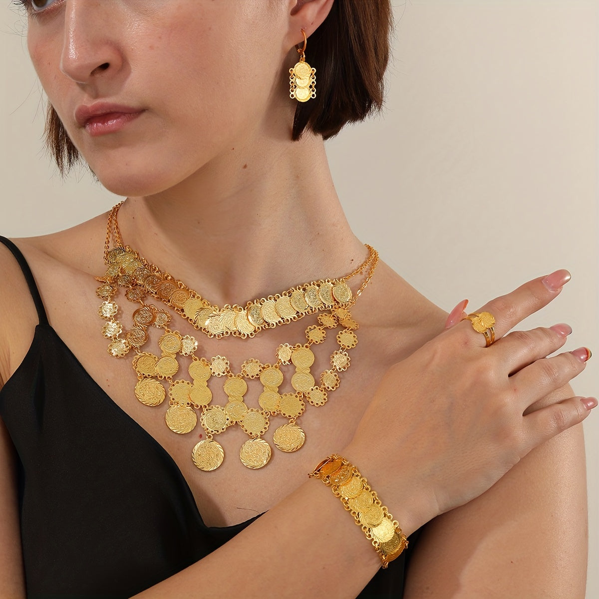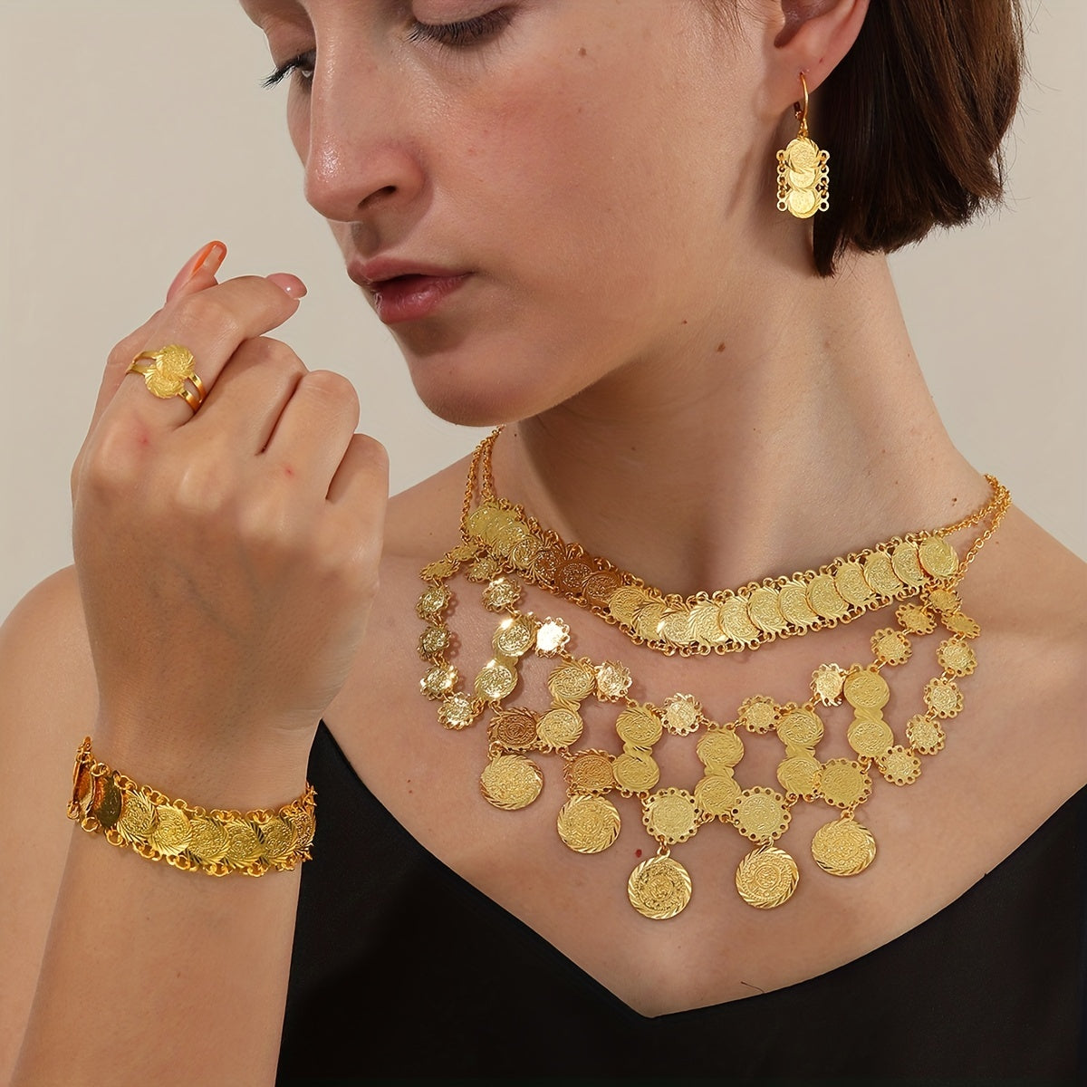 Stand out at parties with this stylish jewelry set featuring rings, earrings, and bracelets. Perfect for bridal banquets and special events.