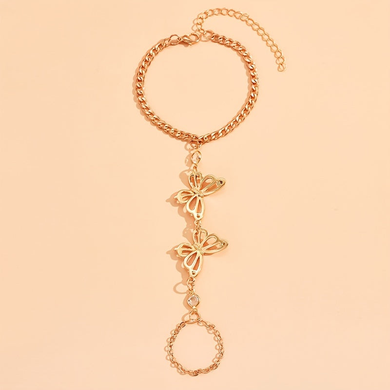This butterfly hand chain bracelet is perfect for beach outings and casual wear. It features a dainty design with an open band ring, suitable for women and girls.