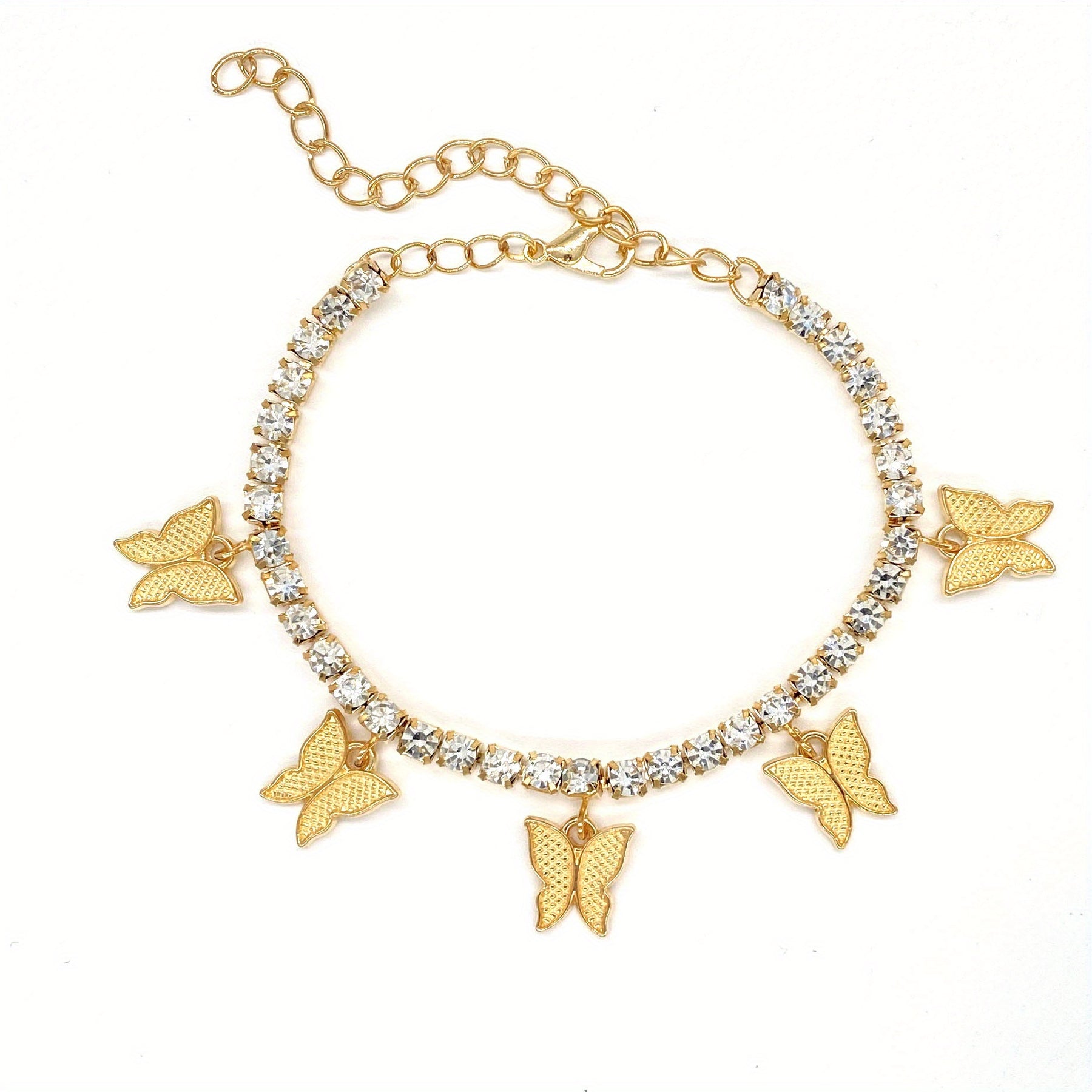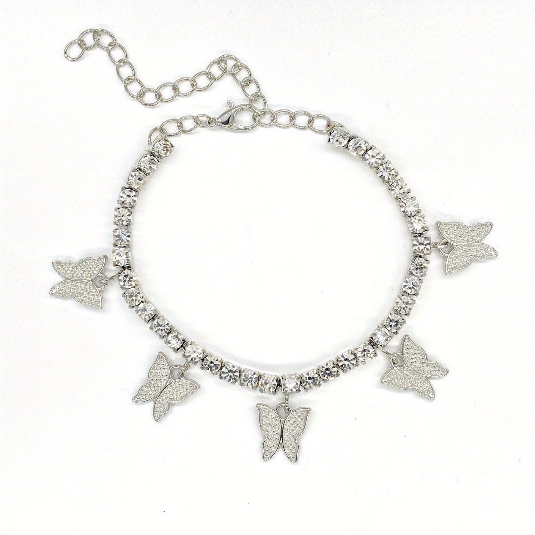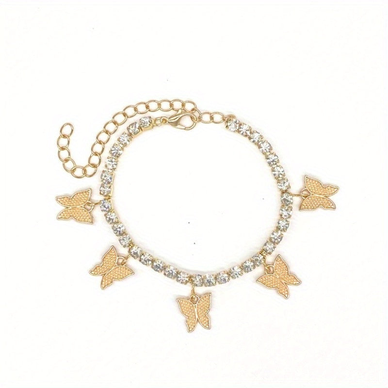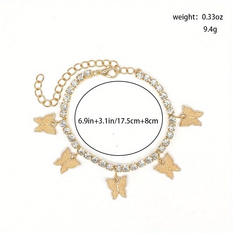 Butterfly Rhinestone Tennis Anklet, Summer Style Foot Jewelry