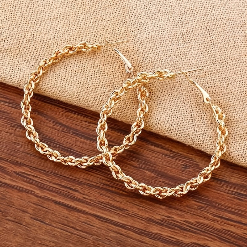 Add a touch of glamour to your look with these chunky chain hoop earrings. Made from 18K plated alloy, these earrings are suitable for women and girls. Perfect for any occasion!