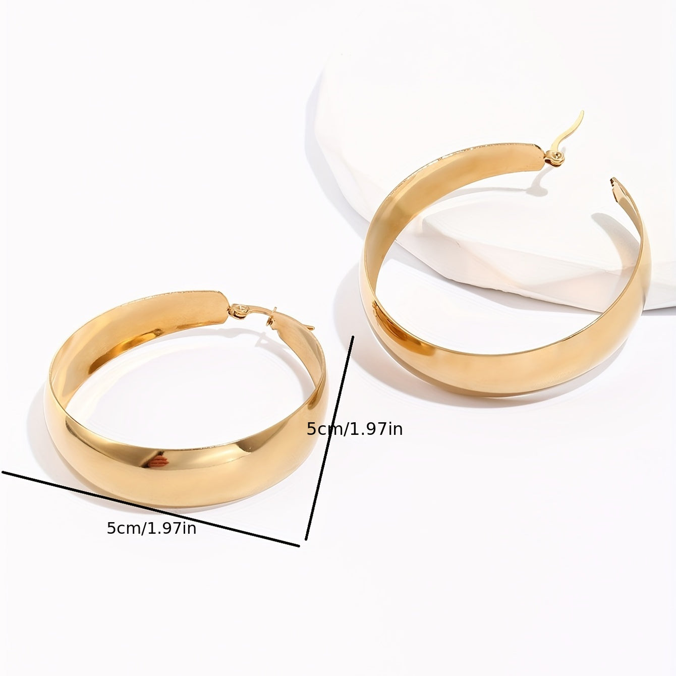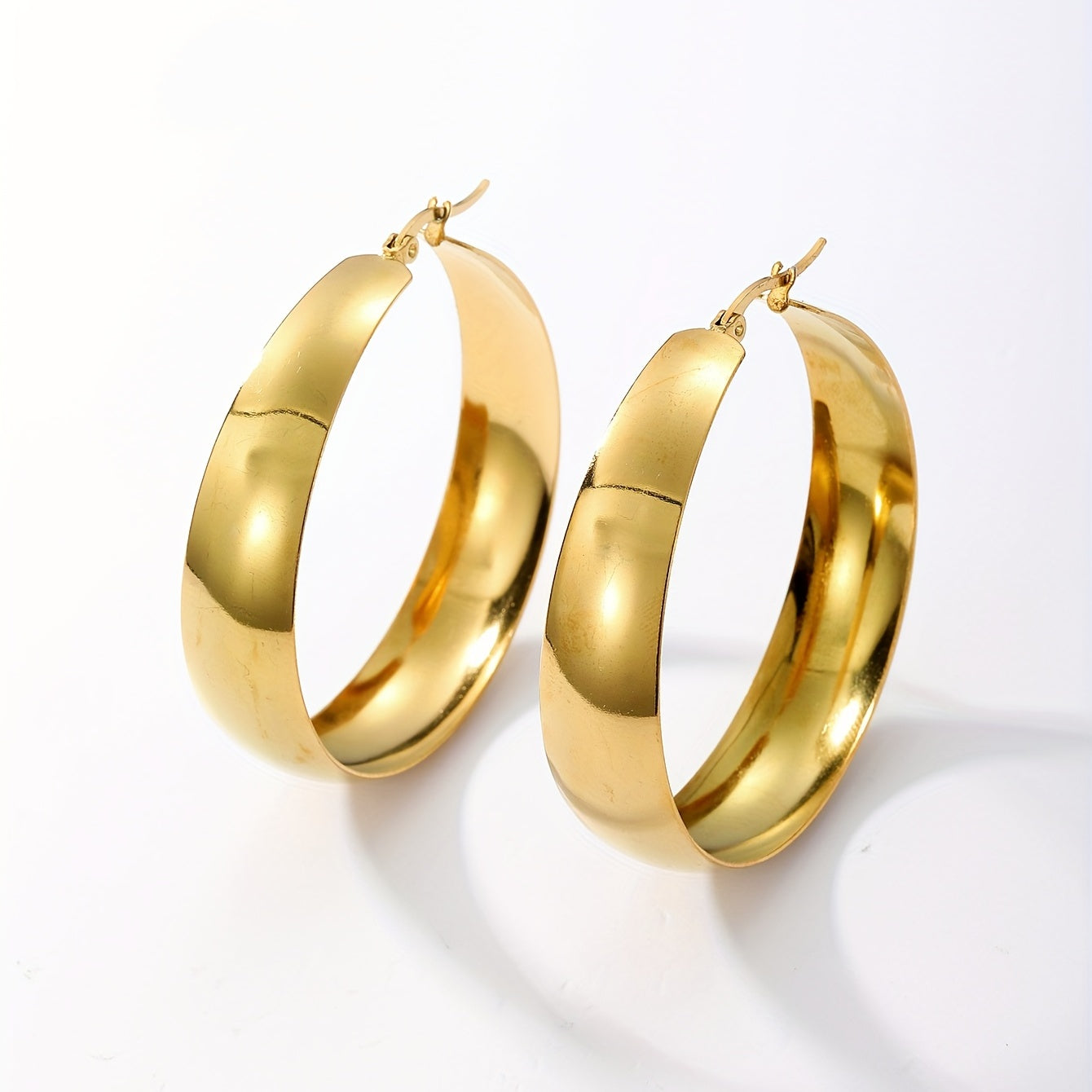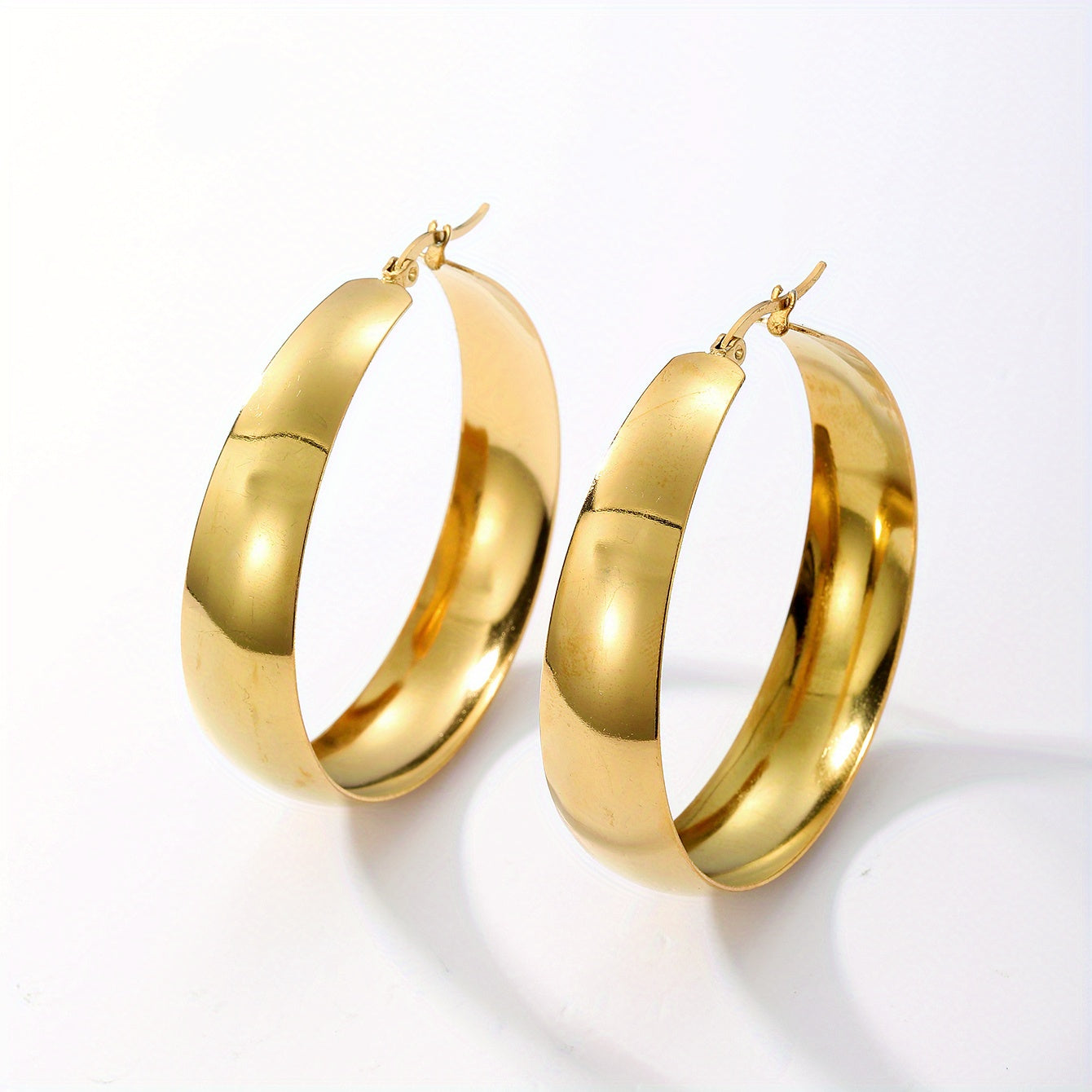 Add a touch of elegance to your daily casual look with these chunky hoop earrings. Made of stainless steel with 18K gold plating, these earrings are perfect for everyday wear. The minimalist design adds a modern touch to any outfit.