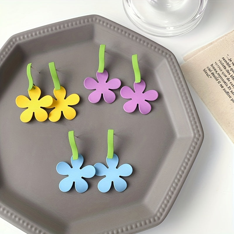Add a pop of color and style to your look with these candy-colored flower dangle earrings. Made of alloy, these earrings are delicate and perfect for gift-giving.