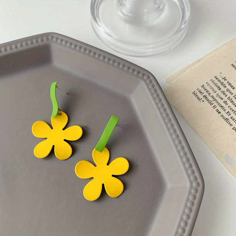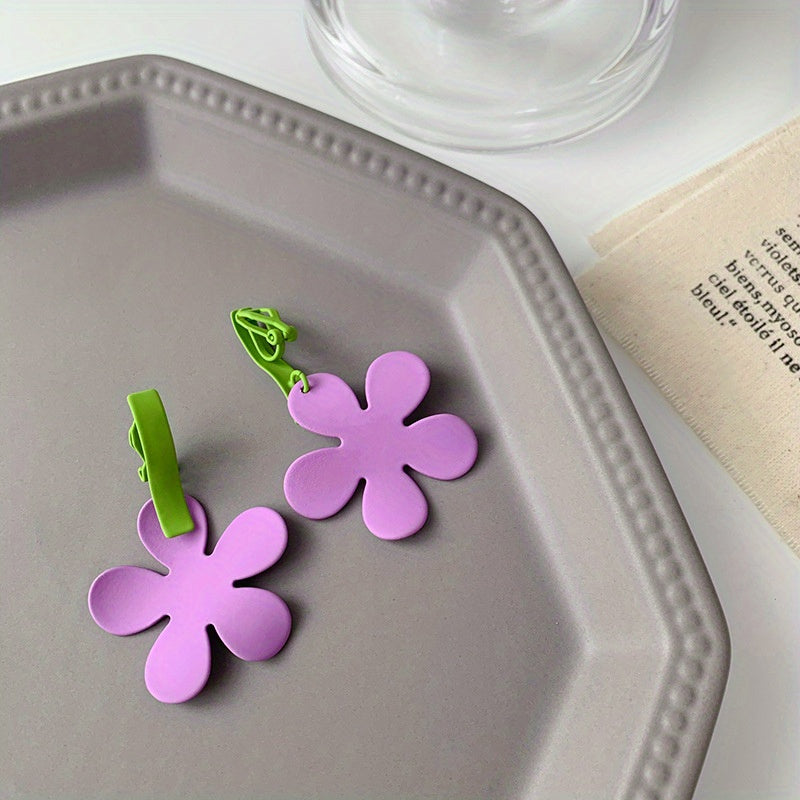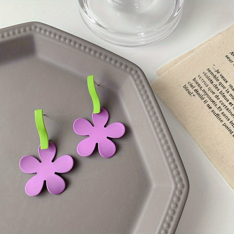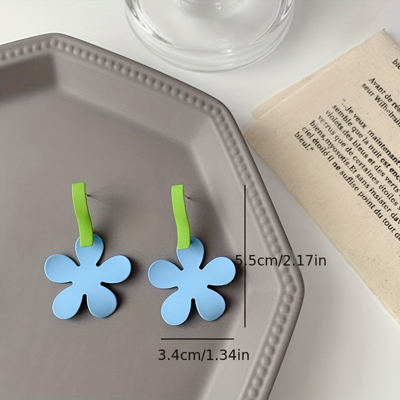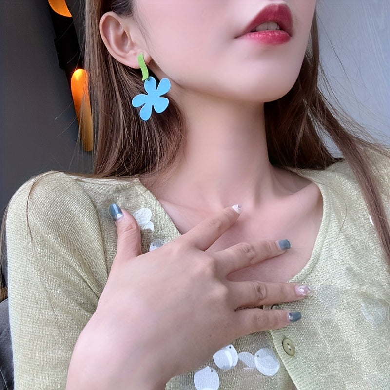 Colorful Flower Dangle Earrings Hip Hop Style Alloy Jewelry