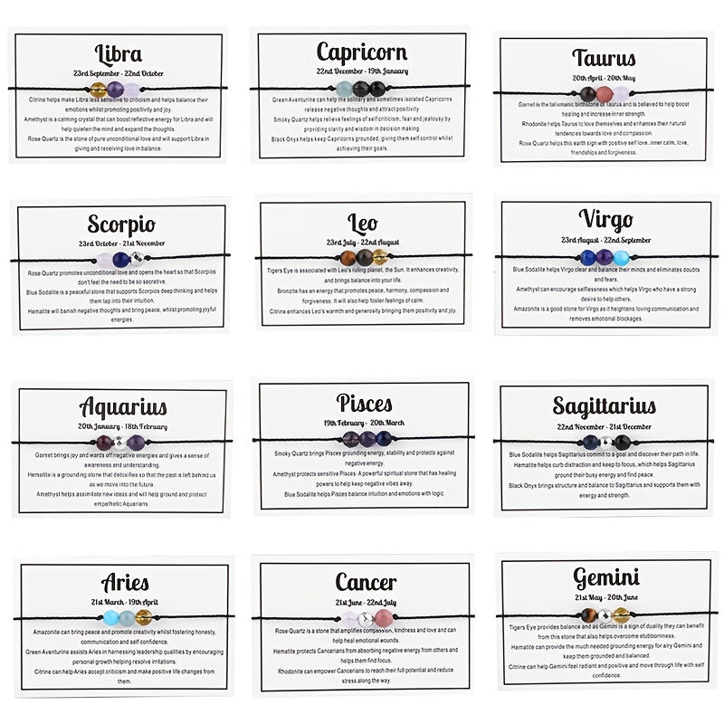 This beautiful rope bracelet features healing crystal beads with a constellation theme. Each bracelet comes with a message card for a thoughtful gift.