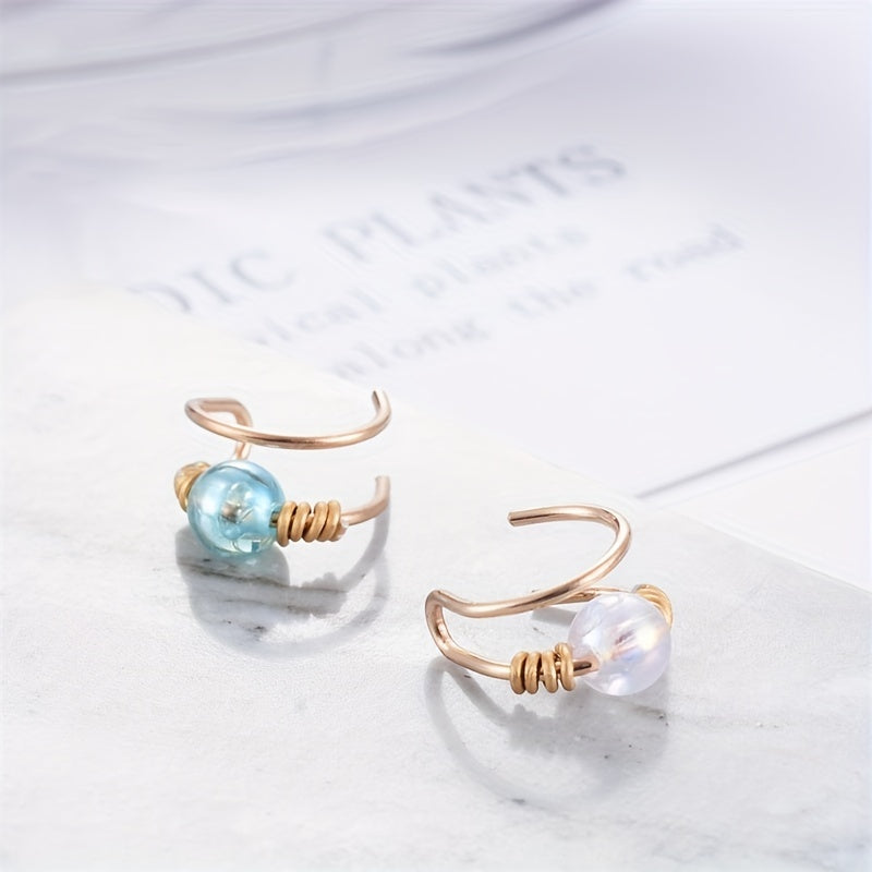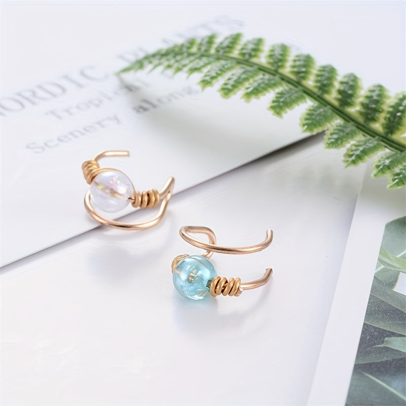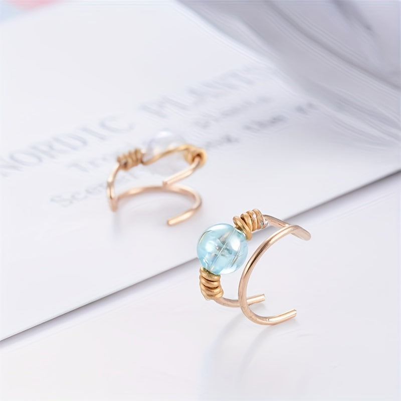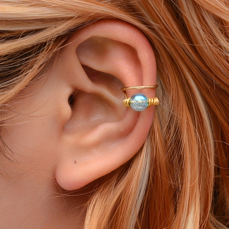 Enhance your daily look with this retro-style copper ear cuff adorned with beads. Ideal for daily wear or as a gift for a female friend.