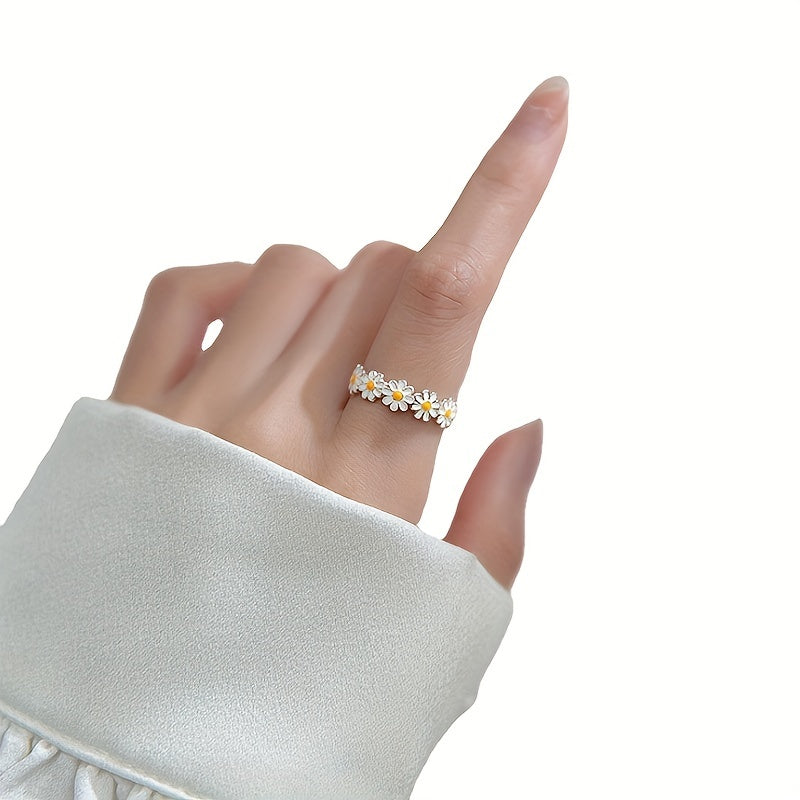 Add a touch of summer to your outfits with this dainty daisy ring that's perfect for daily wear or as a vacation accessory.