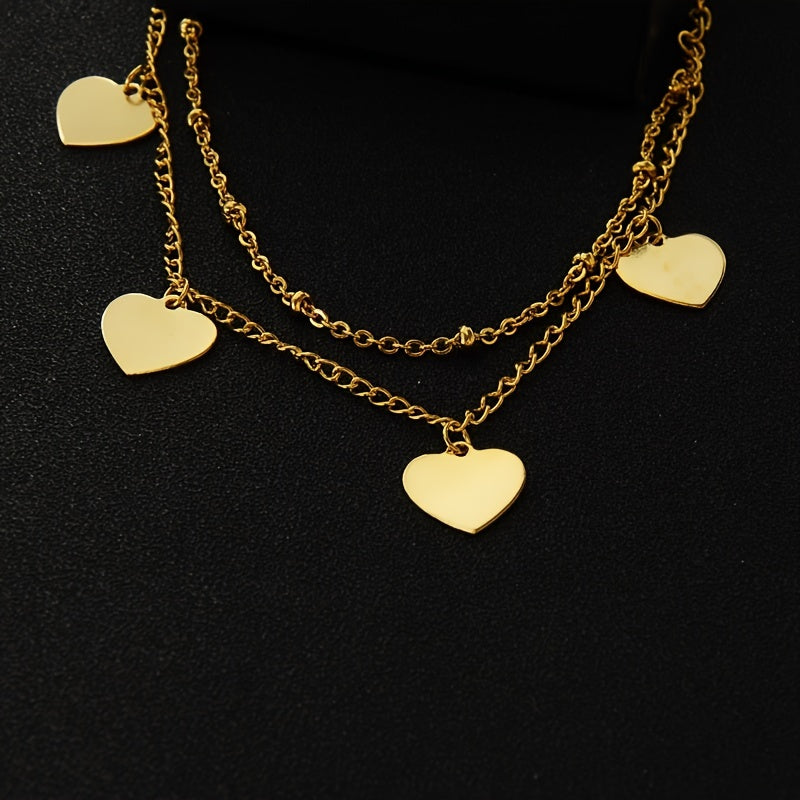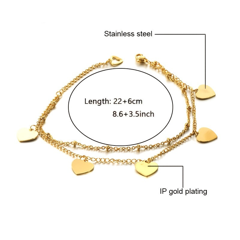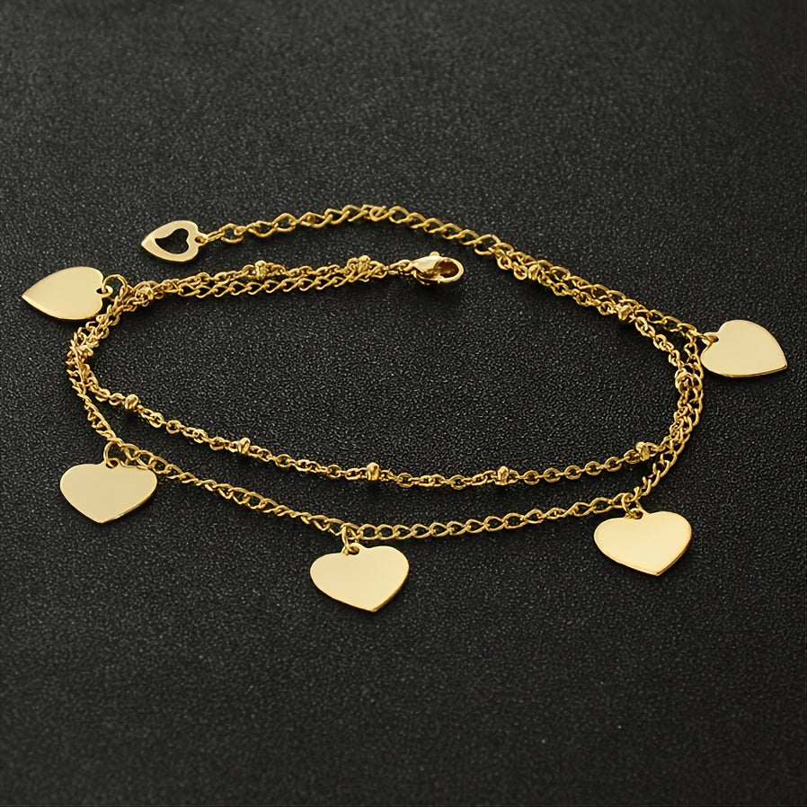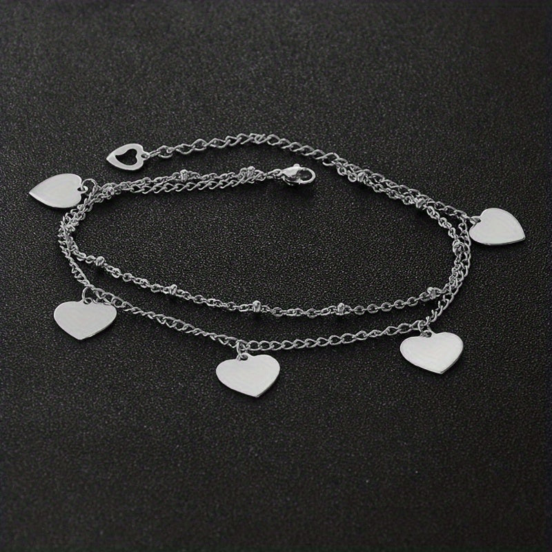 Dainty Double Layer Heart Bracelet Stainless Steel