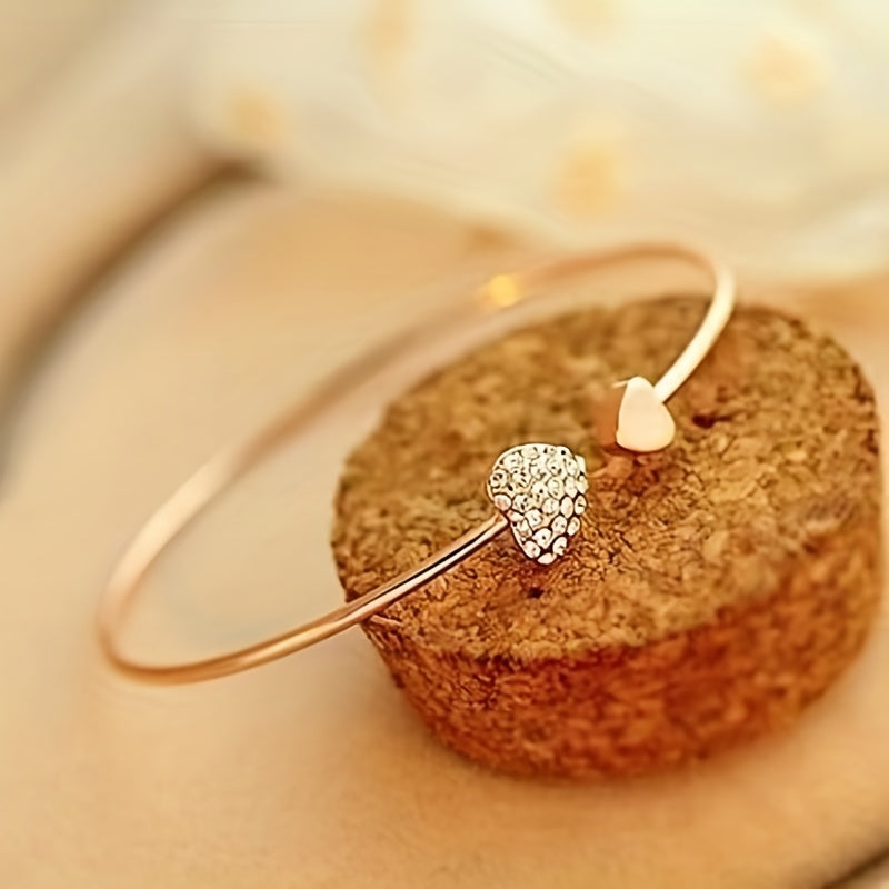 This stunning cuff bracelet features double heart shapes and is adjustable to fit any wrist size. A perfect hand decoration gift for women.