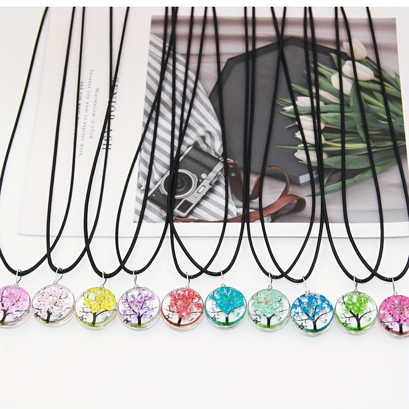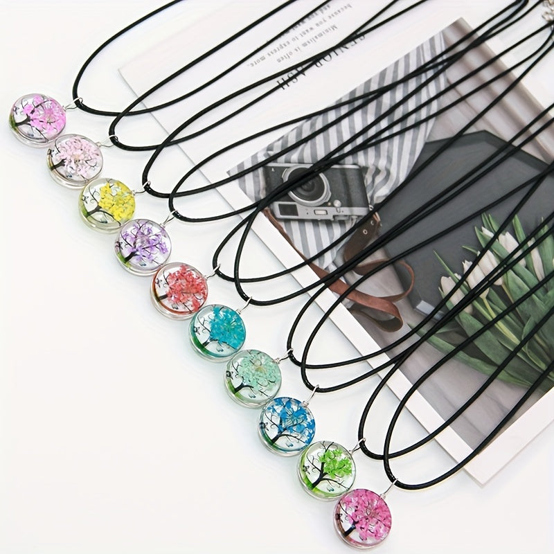 Dried Flower Couple Clavicle Necklace Tree Of Life Gift Neck Jewelry