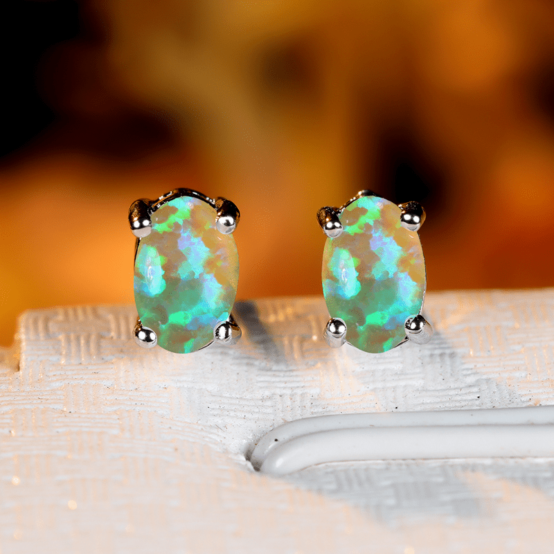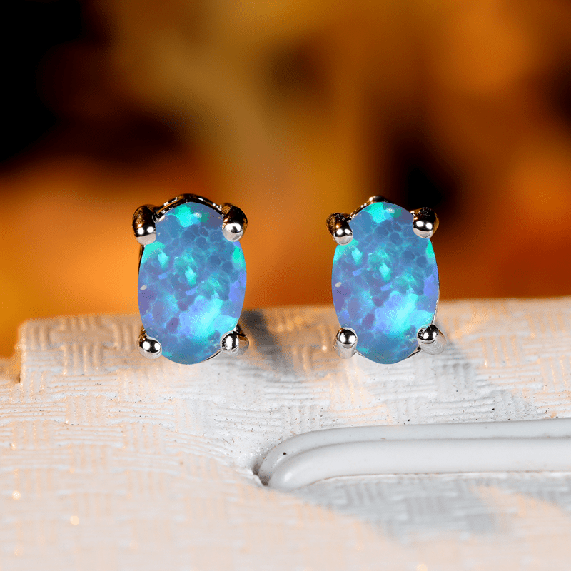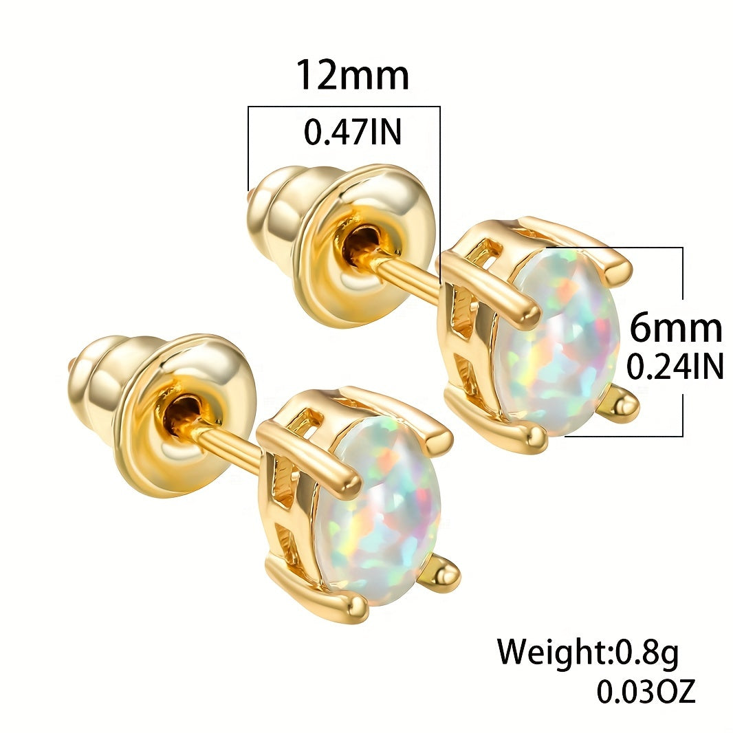 Enhance your style with these minimalist ellipse opal stud earrings. Made of copper with 18K plating, these earrings are perfect for women and girls.