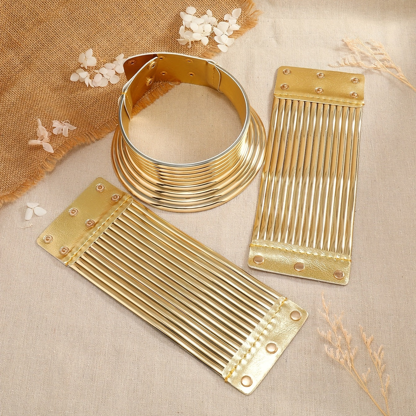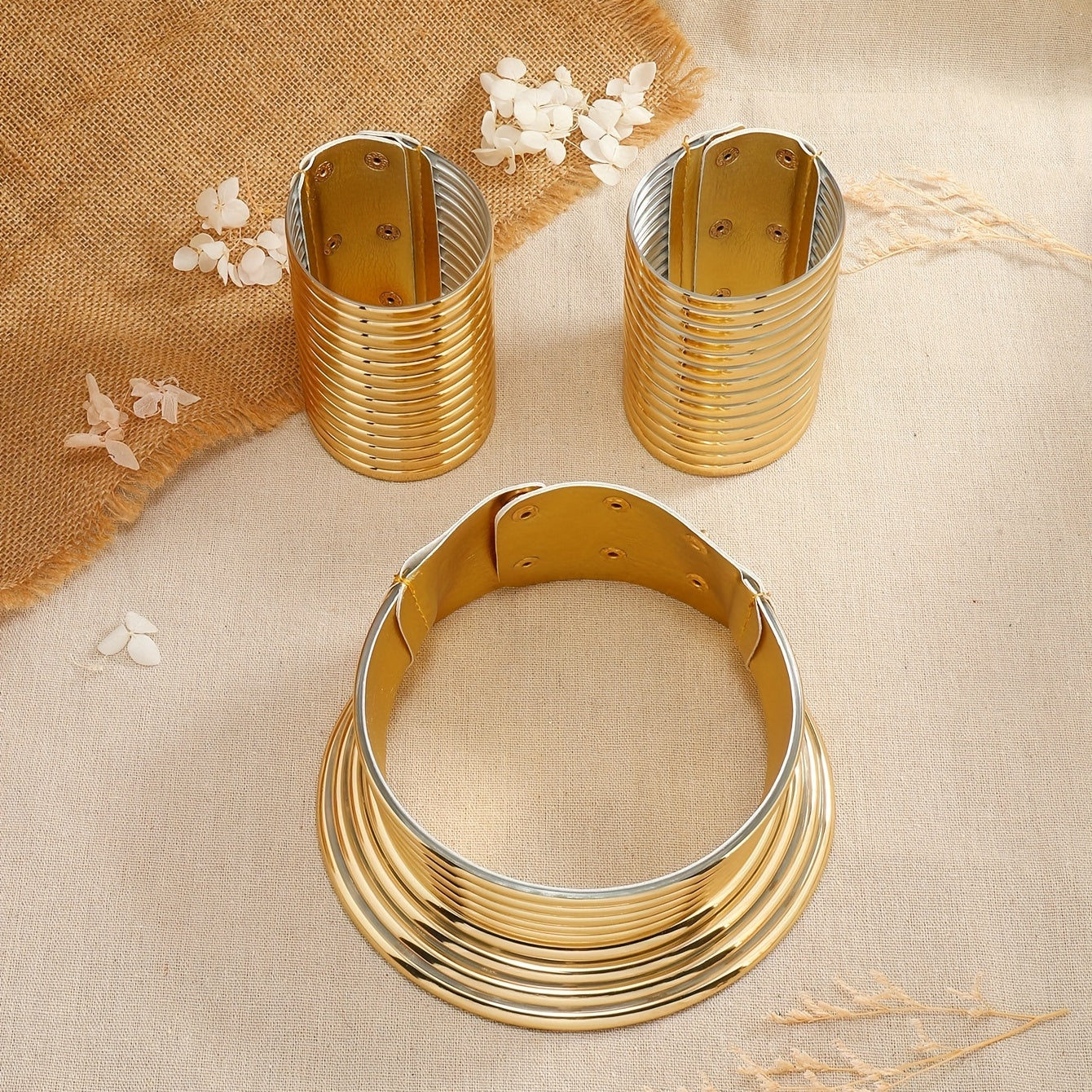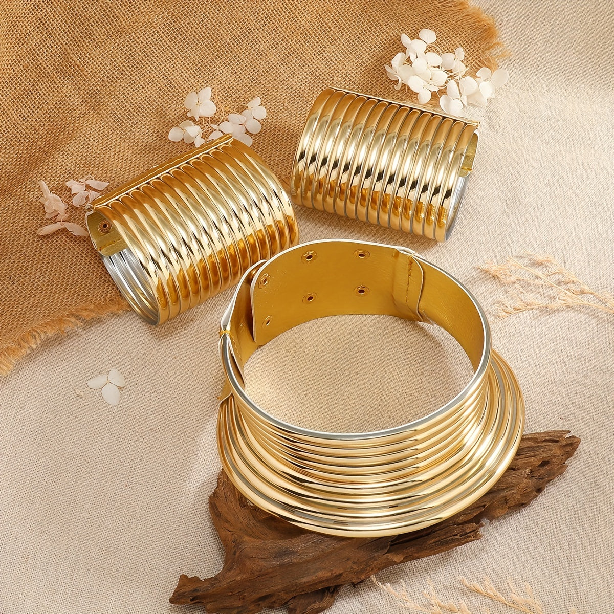 Complete your look with this ethnic style jewelry set featuring an exaggerated texture collar and matching bangle. Perfect for adding a statement to your outfit.