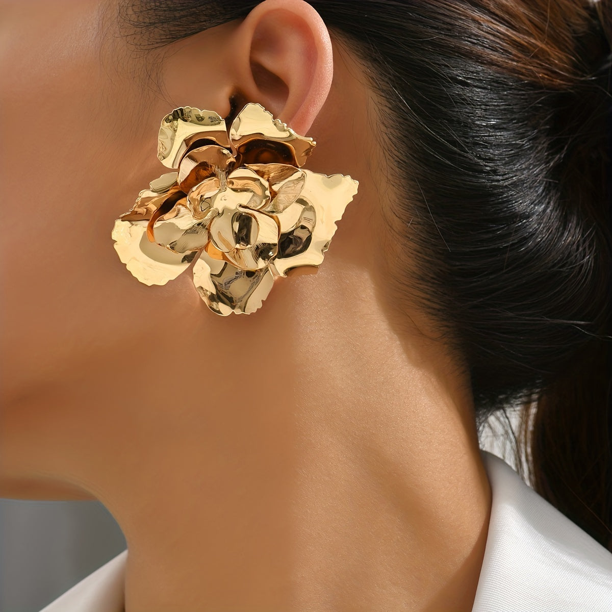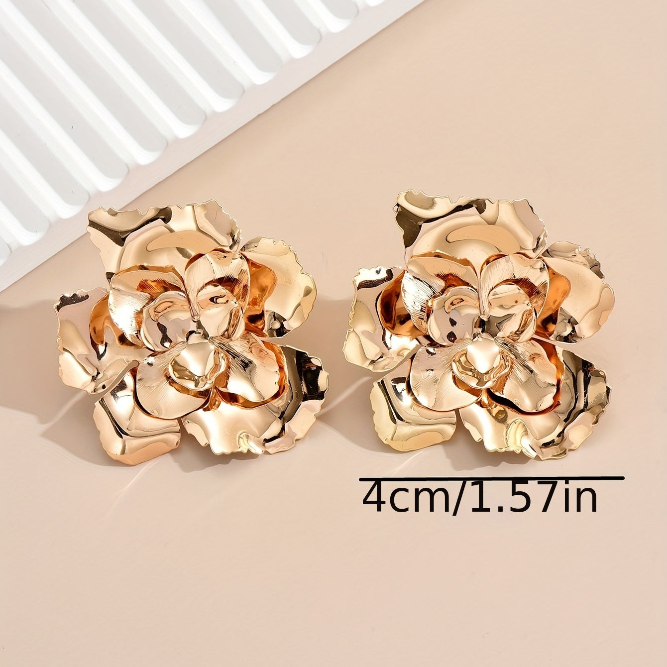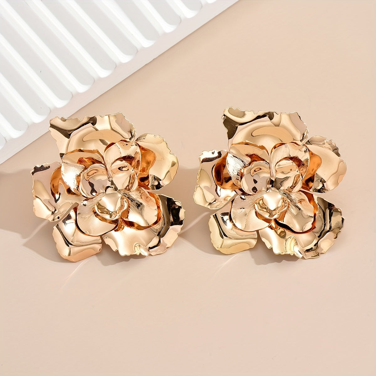 Exag. Golden Flower Stud Earrings Alloy 18K Plated Jewelry