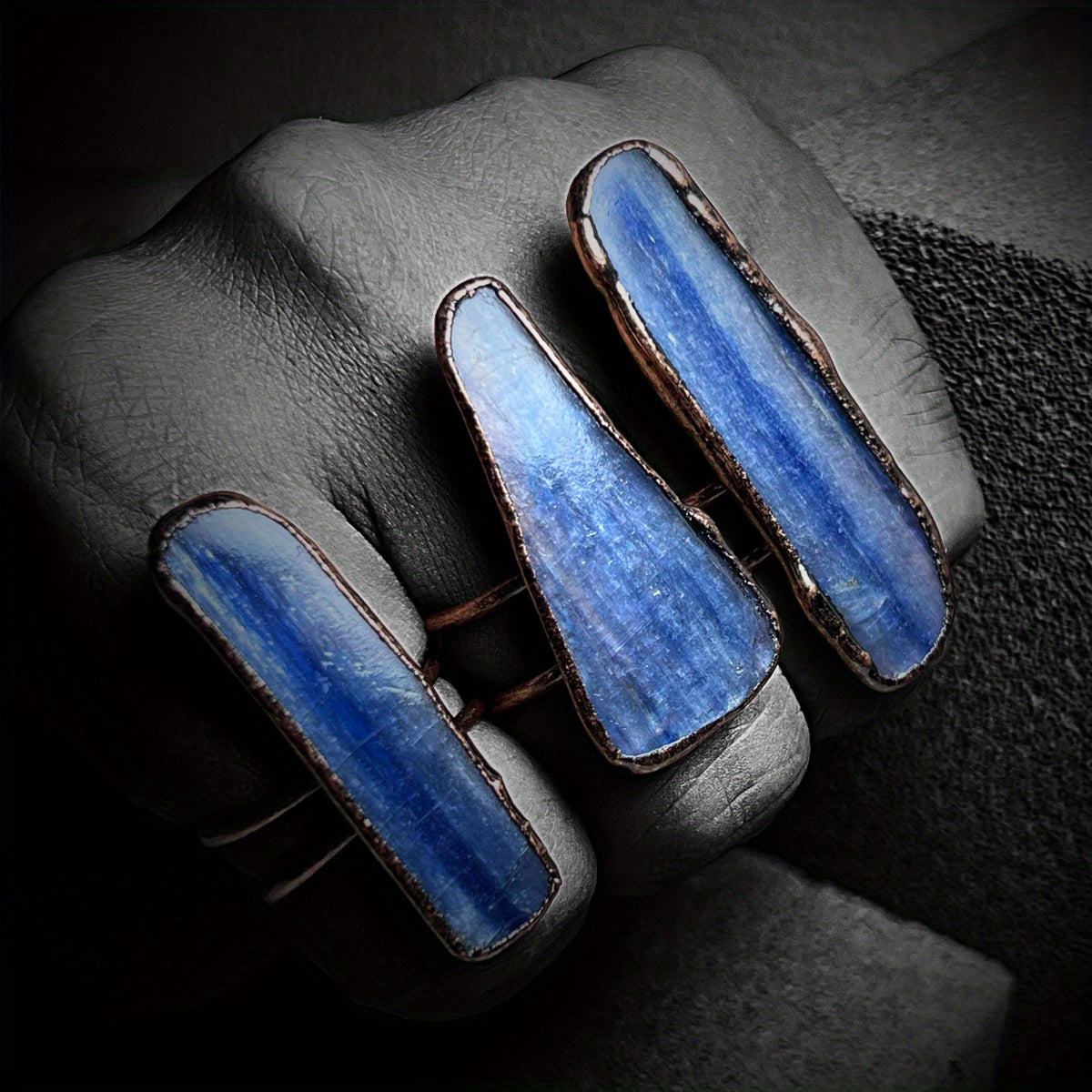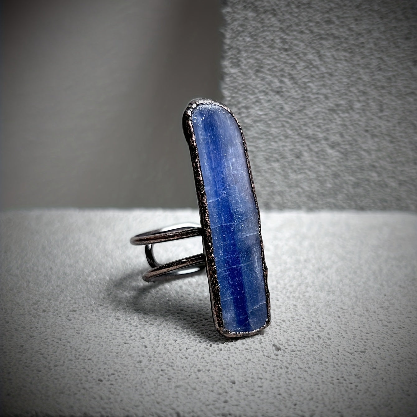 • Exaggerated ring with natural stone inlay