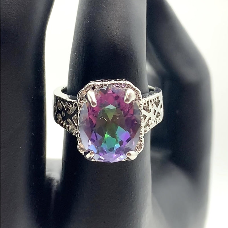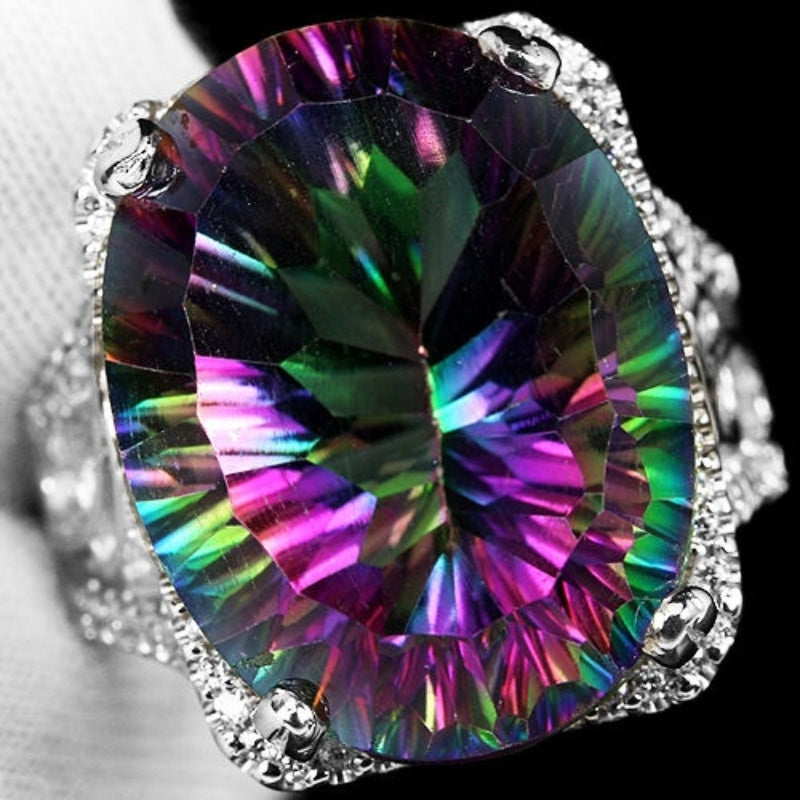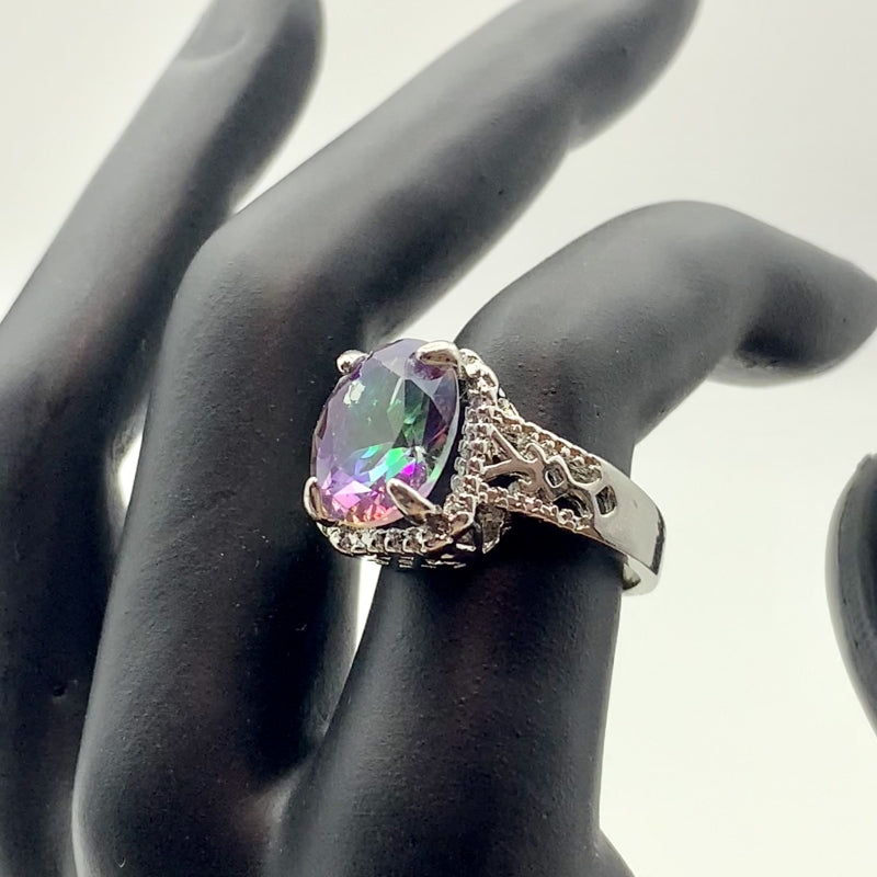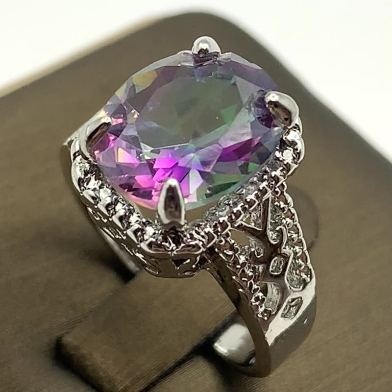 This exquisite ring is perfect for evening parties and cocktail events. Its large zircon stone reflects colorful lights, making it a dazzling accessory. Ideal as a birthday gift for your loved one.