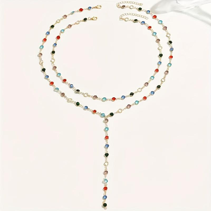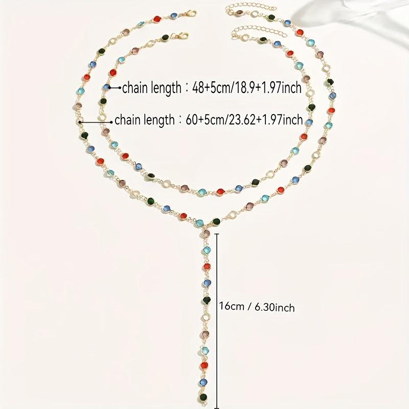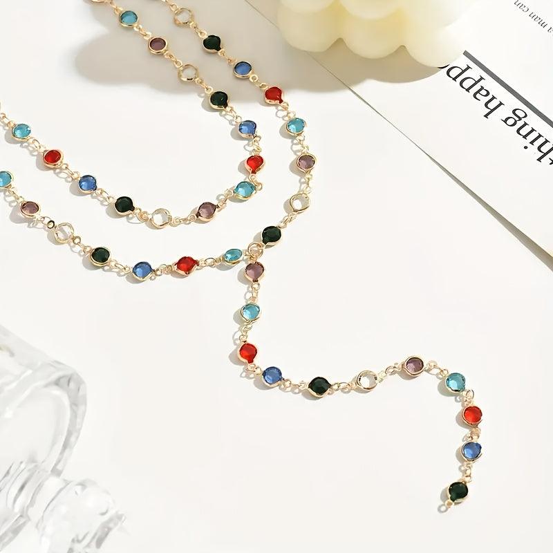Fashion Women's Chain Necklace with Colorful Gemstone Inlay Double Layer Y Chain