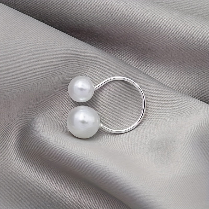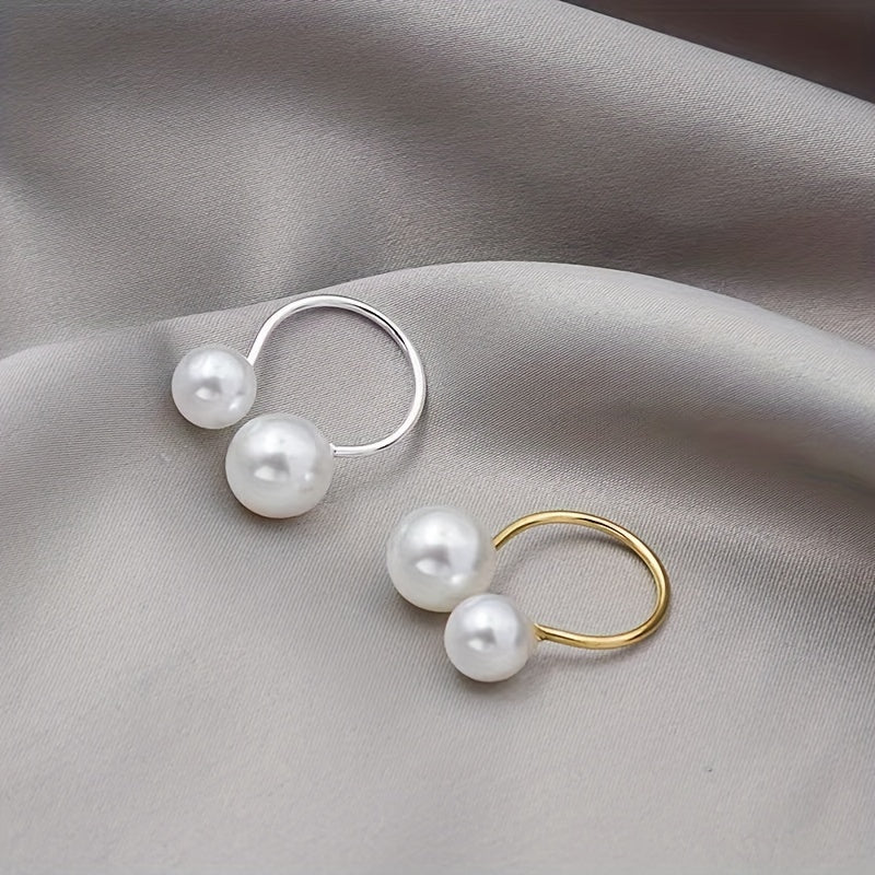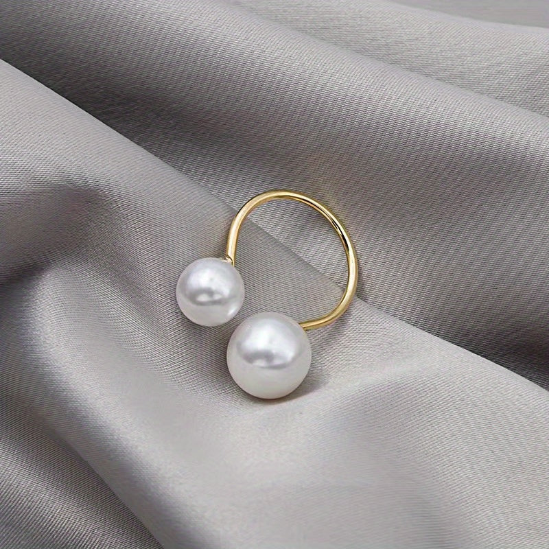 Add a touch of elegance to your evening party outfit with this stunning cuff ring featuring faux pearls and decorative elements. Plated with 18k gold, it's a perfect accessory to elevate your style.
