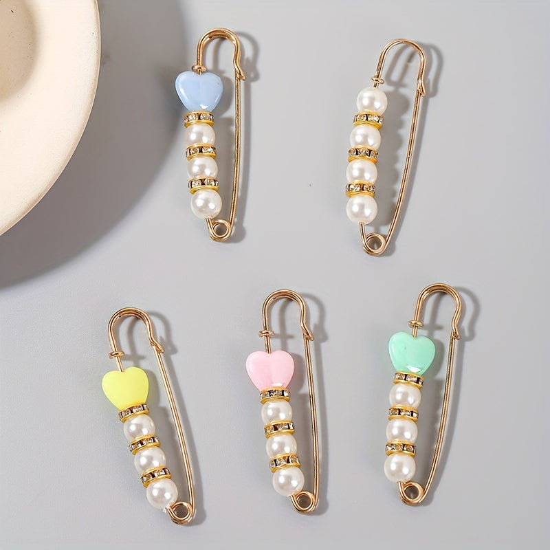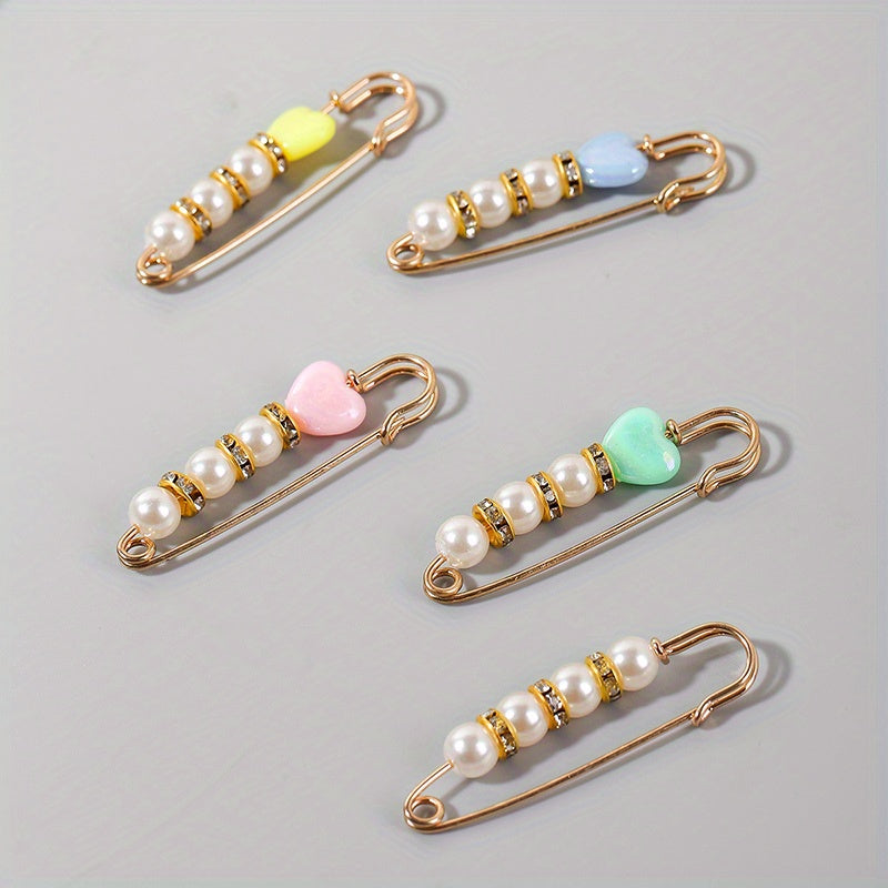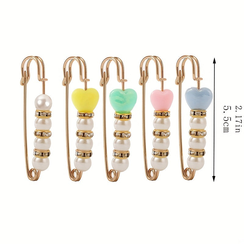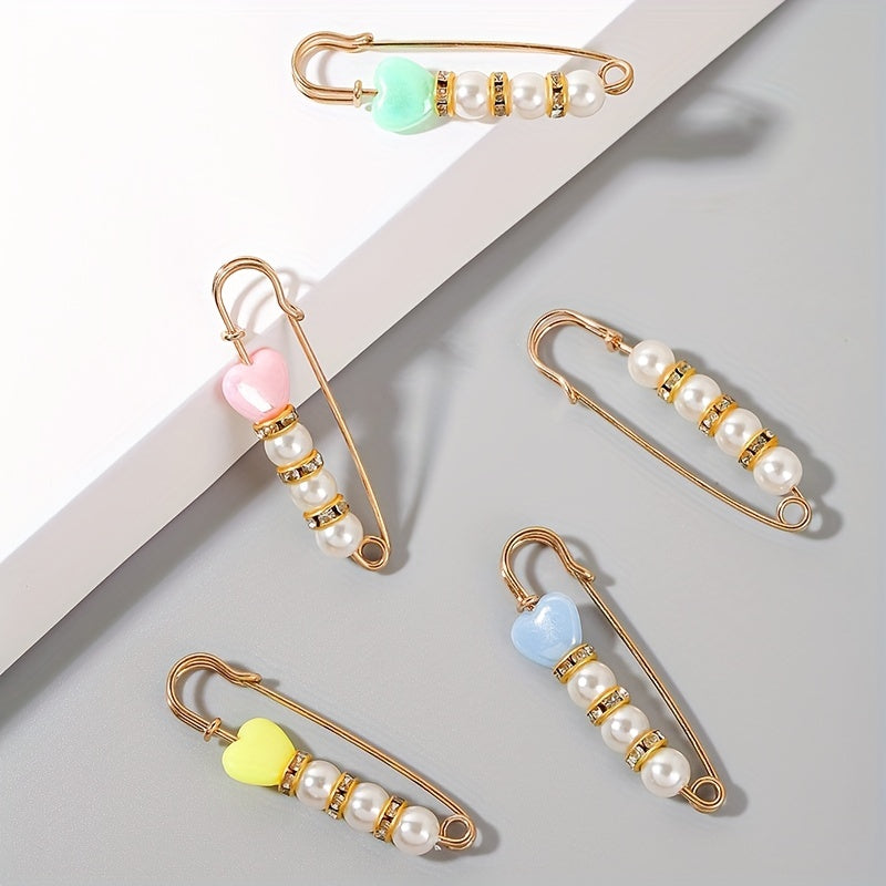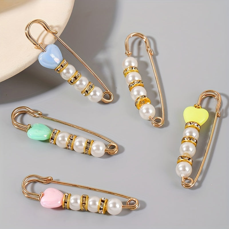 Elevate your daily style with this set of safety pin brooches adorned with faux pearls. Perfect for adding a touch of elegance to your outfits.