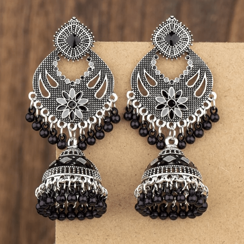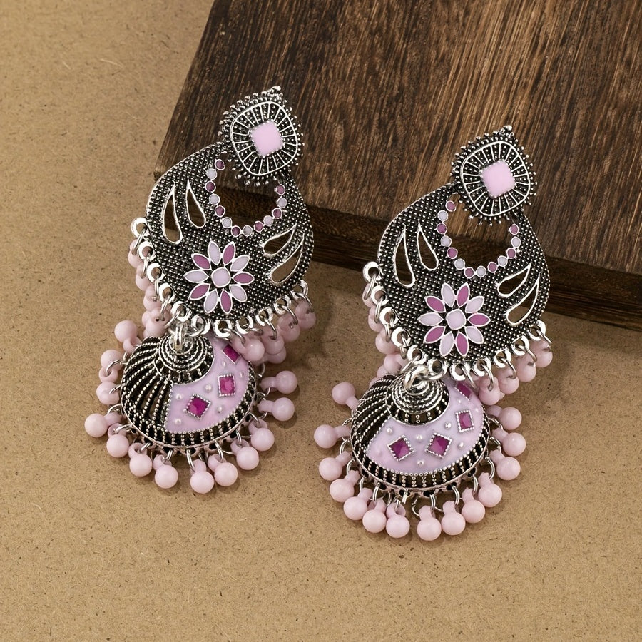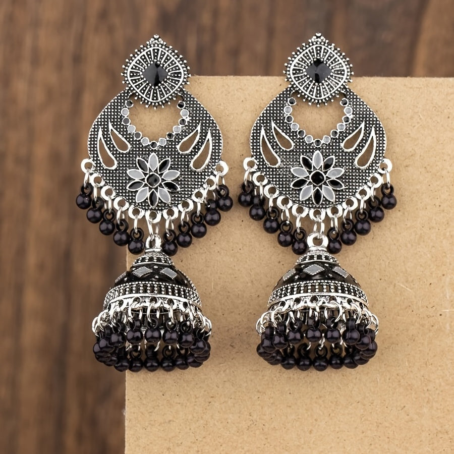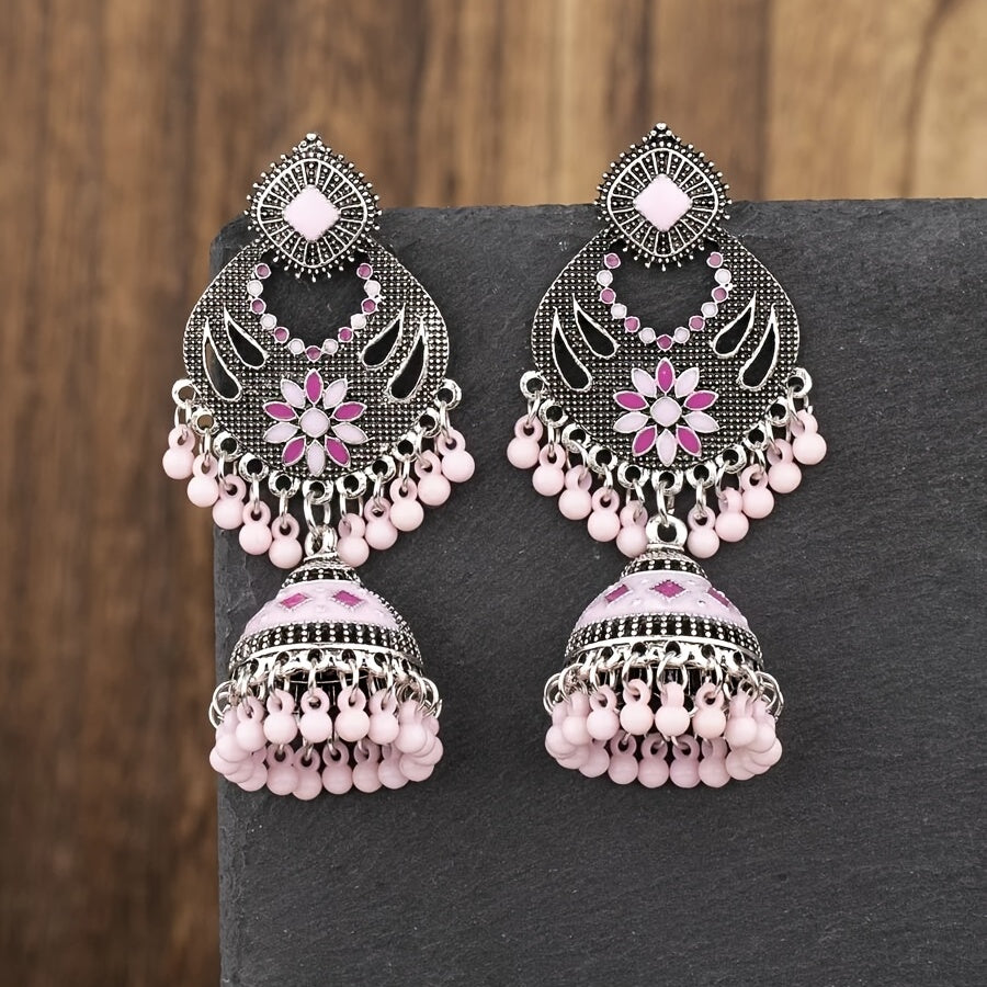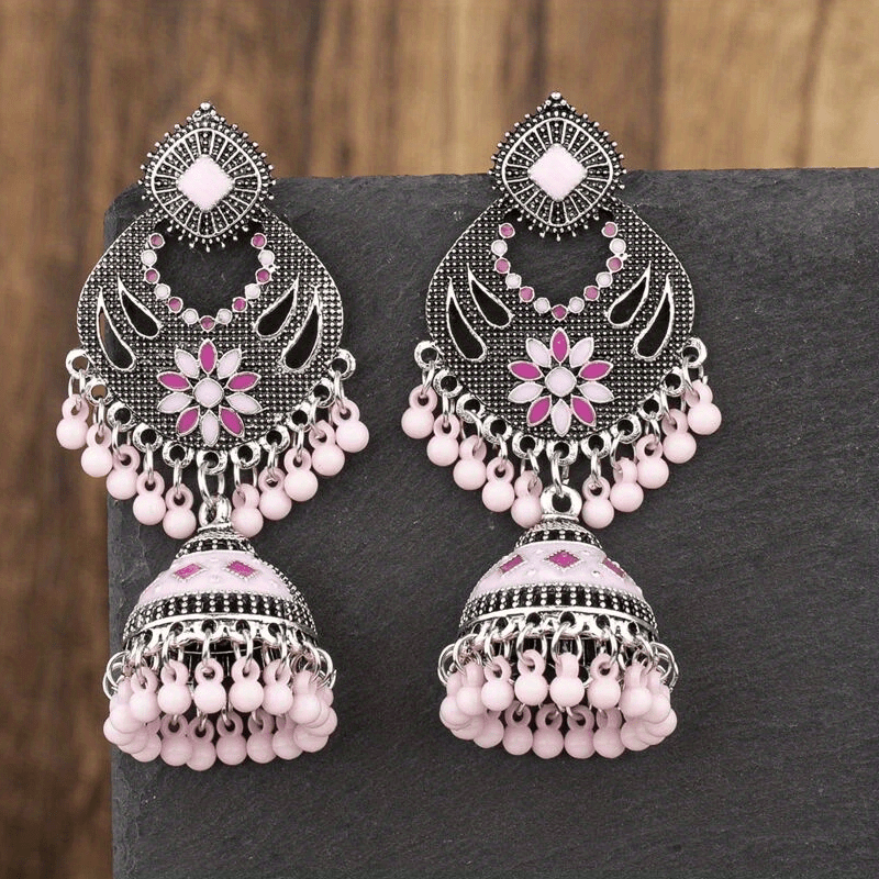 Flower Pattern Beads Decor Dangle Earrings Retro Bohemian Style