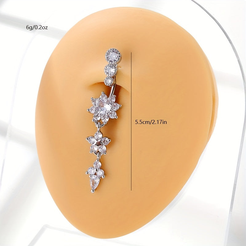 Add a touch of elegance to your belly jewelry collection with this stunning flower tassel pendant belly button ring featuring inlaid zircon accents.